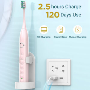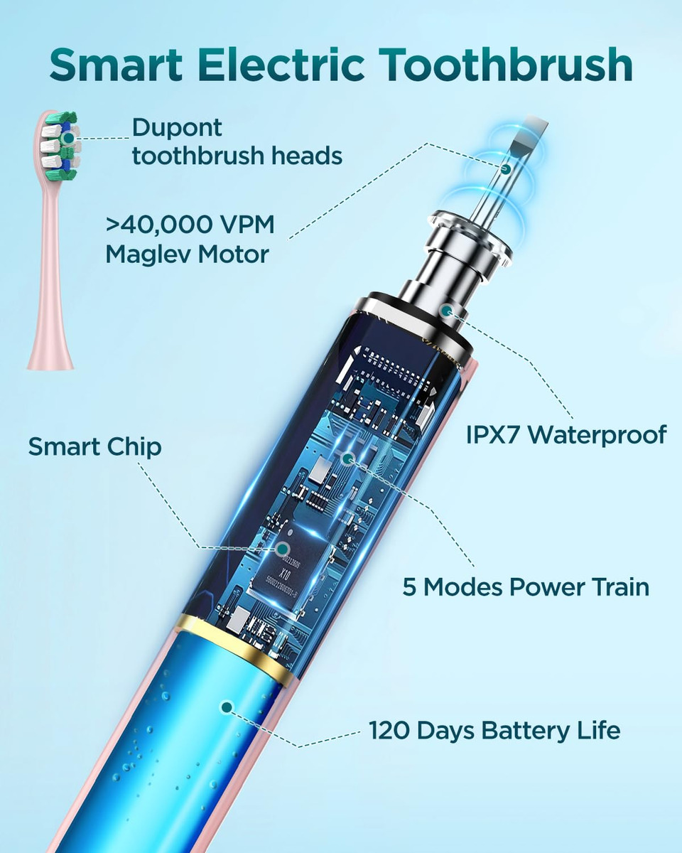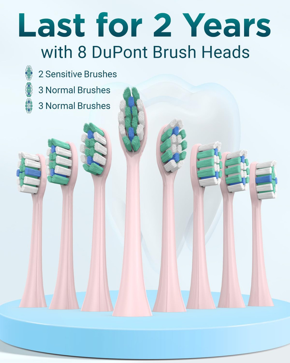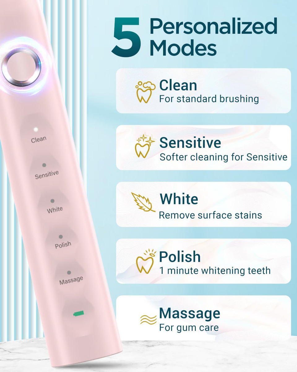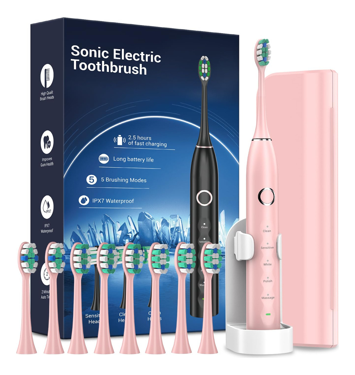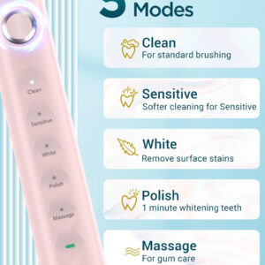 Escova de dentes elétrica sônica atualizada Rtauys S5 para adultos com 8 cabeças de escova, escova de dentes elétrica de viagem IPX7 com estojo de viagem, 2,5 horas de carga por 120 dias, 5 modos com temporizador inteligente integrado rosa – Nova e poderosa limpeza sônica atualizada – Com a tecnologia mais recente com tecnologia sônica de vibração mais alta de até 42.000 VPM, a escova de dentes elétrica Rtauys oferece uma limpeza excepcional ao longo da linha da gengiva, removendo até 125% a mais de placa bacteriana e clareando seus dentes. As cerdas macias e flexíveis contornam o formato da superfície de cada dente, proporcionando 4 vezes mais contato com a superfície e removendo até 10 vezes mais placa bacteriana de áreas de difícil acesso para uma limpeza profunda. – 8 cabeças de escova atualizadas da DuPont – Estão incluídas 2 cabeças de escova sensíveis e 6 de limpeza, todas projetadas pela renomada DuPont, líder global em qualidade e ciência dos materiais. Com a substituição recomendada a cada 3 meses, essas 8 cabeças durarão cerca de 2 anos. A escova de dentes elétrica Rtauys foi criada para se ajustar ao formato dos dentes e limpar completamente as gengivas e áreas de difícil acesso. – 120 dias de duração da bateria e conveniência de viagem – A escova de dentes elétrica recarregável dura até 120 dias com uma única carga rápida de 2,5 horas. Ele possui um indicador de bateria fraca que pisca em vermelho quando a bateria está fraca e oferece carregamento USB-C ultrarrápido. O pacote também inclui um estojo de viagem rígido sem BPA para duas cabeças de escova e um porta-escovas de dentes. Com uma duração de bateria extra longa de até 4 meses com carga total, é perfeita para viagens. – 5 modos de escovação de alto desempenho – A escova de dentes elétrica sônica Rtauys tem 5 modos. Limpeza: para limpeza diária; sensível: limpeza mais suave para pessoas sensíveis; clareamento: remove manchas superficiais; polimento: clareamento de dentes em 1 minuto; massagem: para cuidar da gengiva. Esses modos acomodam diferentes condições de dentes e gengivas, garantindo limpeza e cuidados abrangentes. – Temporizador de alerta vibratório inteligente e impermeável IPX7 – O cronômetro inteligente integrado possui intervalos de 30 segundos para lembrá-lo de passar para o próximo quadrante da boca, totalizando 2 minutos para cobertura completa. Isso garante que você alcance o tempo de escovação recomendado cientificamente. Com um design à prova d'água IPX7, ele garante proteção confiável contra submersão acidental em água e permite o uso seguro em ambientes úmidos, como banheiros ou durante o banho. – O pacote contém – 1* escova de dentes elétrica, 6* cabeças de escova de dentes Dupont, 2* cabeças de escova de dentes sensíveis, 1* porta-escovas de dentes, 1* estojo de viagem, 1* cabo USB-C, 1* manual de instruções. NOTA: Se você tiver alguma dúvida, entre em contato conosco a qualquer momento, mesmo após o fechamento da janela de devolução. Você receberá um atendimento ao cliente rápido e amigável.