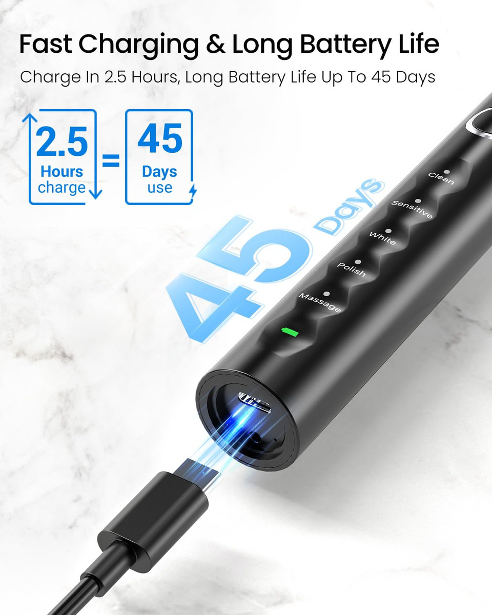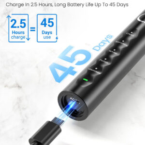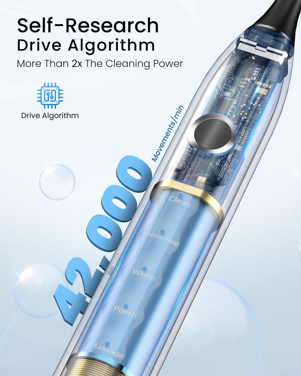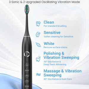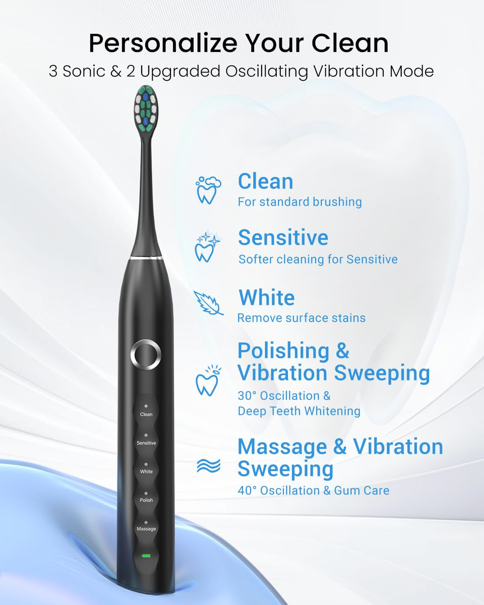 Escova de dentes elétrica de varredura Rtauys S5 – Escovas de dentes elétricas recarregáveis com 8 cabeças, escova de dentes elétrica elétrica elétrica com suporte, 2,5 horas de carga por 45 dias de duração da bateria – Preta – Tecnologia de limpeza dupla para cuidados bucais abrangentes – Utilizando tecnologia de escovação inovadora, a escova de dentes elétrica Rtauys combina vibrações de alta frequência de até 42.000 vezes por minuto com uma ampla oscilação de 40. Ele combate facilmente a placa bacteriana persistente ao longo da linha da gengiva e as bactérias escondidas entre os dentes. O modo inteligente ajusta automaticamente a vibração e a oscilação de acordo com a superfície do dente, permitindo que você siga inconscientemente a técnica de escovação Bass recomendada pelo dentista e desfrute de cuidados bucais de nível profissional. – Potência de limpeza tripla com motor inteligente para saída duradoura – Equipada com um sistema servomotor de alto desempenho, a escova de dentes sônica para adultos oferece três vezes mais poder de limpeza em comparação com as escovas de dente elétricas tradicionais. O algoritmo exclusivo de direção inteligente detecta a resistência à escovação em tempo real, garantindo que a potência permaneça forte mesmo ao escovar entre os dentes ou ao longo da linha da gengiva. Cada sessão de escovação mantém um poder de limpeza estável e eficaz, oferecendo um cuidado profundo duradouro, como se você estivesse usando uma escova nova a cada vez. – 5 modos personalizáveis para uma experiência de limpeza dupla – A escova de dentes elétrica sônica Rtauys oferece duas experiências de limpeza exclusivas: limpeza sônica eficiente e uma combinação aprimorada dos modos de vibração e oscilação sônica. Os três primeiros modos (Limpeza diária, cuidado sensível, clareamento) utilizam 42.000 vibrações por minuto para remover rapidamente a placa bacteriana, cuidar delicadamente das gengivas e eliminar manchas superficiais com eficácia. Os dois últimos modos (polimento, massagem) integram vibração sônica com ampla tecnologia de oscilação, garantindo uma limpeza profunda e massageando eficazmente as gengivas para promover a circulação sanguínea e melhorar a saúde bucal geral. – Cabeças de escova DuPont para cuidados profissionais da gengiva – Com 8 cabeças de escova feitas de materiais DuPont, este conjunto inclui 2 cabeças de escova sensíveis que cuidam suavemente das gengivas e 6 cabeças de escova de limpeza que limpam completamente as áreas de difícil acesso. O design exclusivo se adapta perfeitamente aos contornos dos dentes, proporcionando uma experiência de limpeza incomparável. Cada cabeça de escova dura três meses, fazendo com que este conjunto dure aproximadamente dois anos. – Lembrete de cronômetro inteligente para escovar sem esforço – O cronômetro de vibração inteligente integrado lembra que você deve alternar as áreas de escovação a cada 30 segundos, fazendo uma pausa de 1 a 2 segundos durante a troca para garantir que você possa se ajustar totalmente ao próximo quadrante. Ele permite que você complete os 2 minutos de escovação recomendados pelo dentista com precisão. Com um design à prova d'água IPX7, você não precisa se preocupar com as condições úmidas do banheiro e pode usá-lo com segurança durante o banho. – Vida útil prolongada da bateria para conveniência de viagem – Uma carga rápida de apenas 2,5 horas fornece até 120 dias de uso! Ele vem com um estojo de viagem portátil e um cabo de carregamento USB-C, para que você nunca precise se preocupar em perder o carregador enquanto estiver em trânsito. Seja em casa ou viajando, você pode facilmente manter um sorriso fresco e limpo. – Presente atencioso com serviço eficiente – Incluídos no pacote estão a alça elétrica da escova de dentes, 8 cabeças de escova DuPont, um porta-escovas de dentes, uma maleta de viagem e um cabo de carregamento USB-C. Se você encontrar algum problema, nossa equipe de atendimento ao cliente está sempre pronta para fornecer assistência cuidadosa, garantindo que você tenha uma boa experiência de compra.