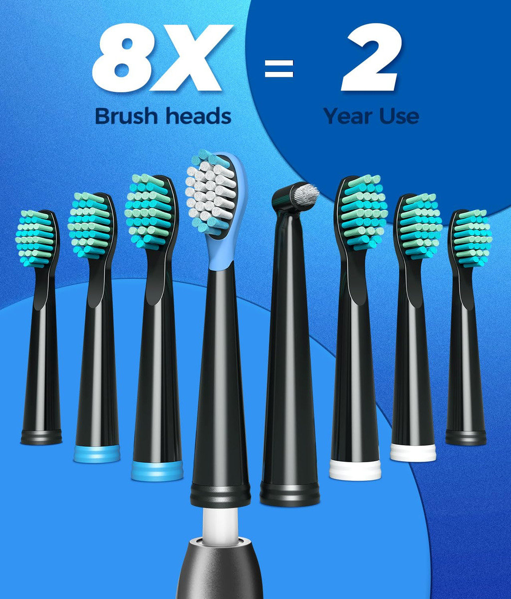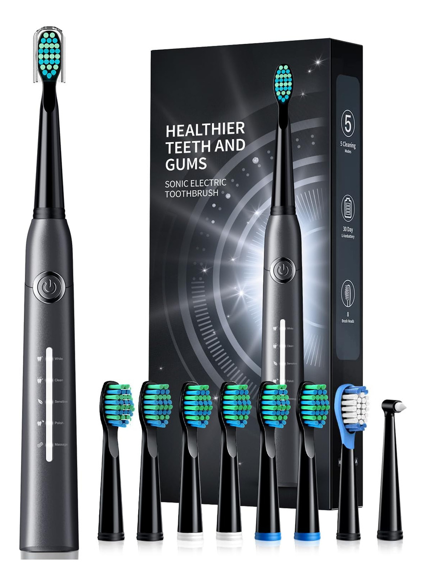 – Equipadas com um motor potente e líder do setor, produzindo 40.000, essas escovas de dente elétricas sônicas para adultos e crianças podem remover com eficácia até 99,99% das placas. Obtenha uma escova de dentes mais completa que a manual, 6 vezes maior que a escova de dentes elétrica comum. – – Equipada com um motor potente e líder do setor que produz 40.000, essas escovas de dente elétricas sônicas para adultos e crianças podem remover com eficácia até 99,99% das placas. Compre uma escova de dentes mais completa que a manual, 6 vezes maior que a escova de dentes elétrica comum. – Por último – A escova de dentes elétrica Sonicare vem com 8 cabeças de escova DuPont, que você pode usar por 2 anos. As cerdas de alta densidade e o design em “” podem penetrar completamente na gengiva, removendo profundamente as manchas persistentes dos dentes. Você pode compartilhar uma escova de dentes e coleiras de cores diferentes podem ser usadas para distinguir as cabeças das escovas de dentes de diferentes membros da família. Você saberá que é hora de trocar a cabeça da escova. – E 45 – As escovas de dentes elétricas Sonicare para adultos e crianças são carregadas em alta velocidade por cabo, ao mesmo tempo em que oferecem uma ação de limpeza duradoura entre as cargas. Essas escovas de dente sônicas recarregáveis podem durar 45 (2 min/2x por dia) com uma carga completa, perfeitas para viagens em qualquer lugar. Pesa apenas 55 g, menos da metade das escovas de dentes Sonicare comuns. Ipx7 à prova d'água para facilitar o enxágue com água após cada uso. – 5 modos de alto desempenho – A escova de dentes elétrica para adultos e crianças suporta 5 modos com base em suas necessidades específicas:,,,. O modo vibra 40.000 movimentos por minuto para quebrar as manchas. Penetra profundamente no dentista, remove a sujeira escondida no periodontal. Enquanto o modo de massagem oferece uma massagem suave nas gengivas. – Notificação vibratória – Um chip inteligente integrado orienta você a ter um sorriso mais saudável, oferecendo uma pausa intervalada a cada 30, para que você saiba como passar para um novo quadrante da boca. Um cronômetro automático desliga automaticamente esta escova de dentes elétrica Sonicare, informando que você escovou até o dentista inteiro. Recomenda-se 2 minutos. – 7 à prova d'água e o que está incluído7 escovas de dente à prova d'água, não se preocupe, você pode usá-la na banheira e no chuveiro.: 1* escova de dentes elétrica, 6* cabeças de escova de dentes Dupont, 1 * cabeça raspadora de língua, 1* capa interdental, 1* cerdas protetoras, 1* cabo USB, 1* manual de instruções.
