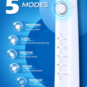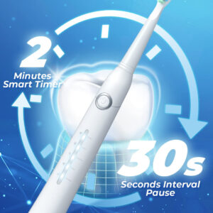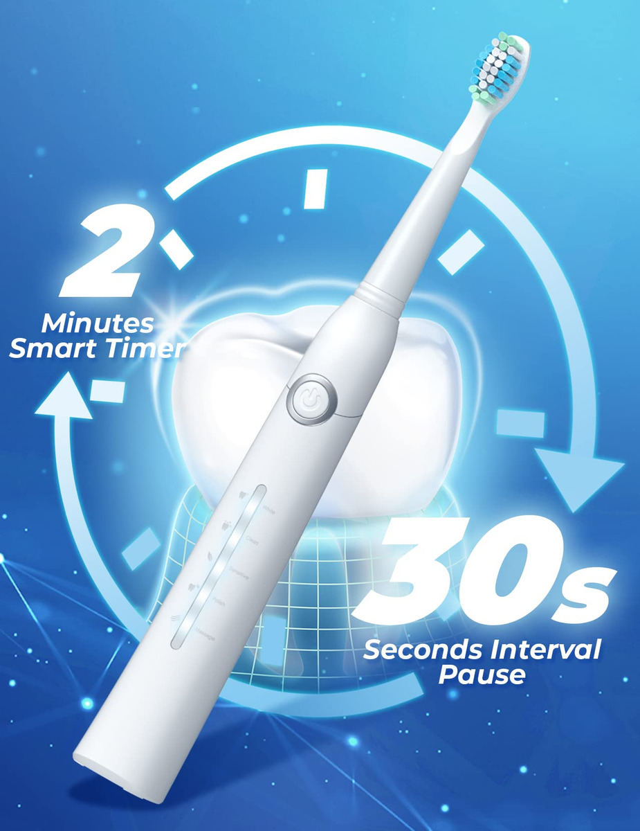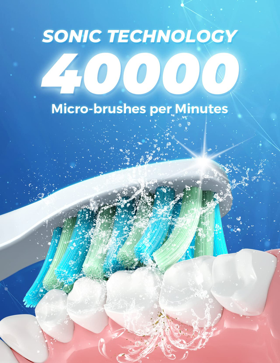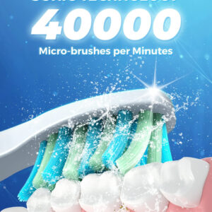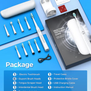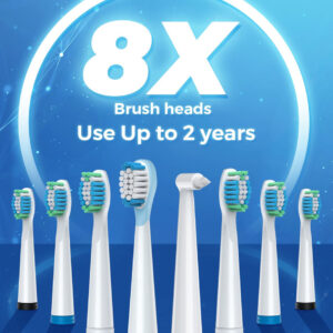 8 cabeças de escova substituíveis Dupont por 2 anos para usar 4 horas de carga rápida, duram até 30 dias. 5 modos personalizados para atender a todas as suas necessidades diárias de limpeza. Temporizador inteligente de 2 minutos para incentivar um hábito saudável de escovação. Gengivas saudáveis e dentes brancos significam um lindo sorriso. A marca TEETHEORY é pioneira na área de saúde e cuidados pessoais. A escova de dentes elétrica TEETHEORY ajudou 2.000.000 de pessoas a clarear os dentes e manter o hálito fresco por meio da tecnologia elétrica sônica. – Gengivas mais saudáveis – equipadas com um motor potente e líder do setor que produz 40.000 vibrações por minuto, essas escovas de dentes elétricas para adultos podem remover com eficácia até 100% das placas. Obtenha um efeito de limpeza completo 10 vezes maior do que a escova de dentes manual, 3 vezes mais do que a escova de dentes elétrica sônica comum – 8 cabeças de escova de reposição e estojo de viagem incluídos – a escova de dentes elétrica sônica vem com 8 cabeças de escova DuPont, que você pode usar por 2 anos. As cerdas de alta densidade e o design em forma de “W” podem penetrar completamente na gengiva, removendo profundamente as manchas persistentes dos dentes. A cor das cerdas do lembrete desbotará, avisando que é hora de trocar a cabeça da escova. É perfeita para viagens em qualquer lugar com a maleta de viagem incluída – carga rápida e 30 dias de duração da bateria – a escova de dentes Power Sonic para adultos carrega em alta velocidade por cabo USB, ao mesmo tempo em que oferece uma ação de limpeza duradoura entre as cargas. Essas escovas de dentes recarregáveis para adultos podem durar 30 dias (2 min/2x por dia) com carga total, perfeitas para viagens em qualquer lugar. Pesa apenas 55 g, menos da metade das escovas de dente recarregáveis comuns. Impermeável IPX7 atualizado para facilitar o enxágue com água após cada uso – 5 modos de alto desempenho – a escova de dentes elétrica para adultos suporta 5 modos com base em suas necessidades específicas: clareamento, limpeza, sensibilidade, polimento e massagem. O modo de clareamento vibra 40.000 golpes por minuto para quebrar as manchas. O modo de limpeza penetra profundamente no interior do dente, remove a sujeira escondida no periodontal. Enquanto o modo Massagem oferece uma massagem suave nas gengivas para estimular o fluxo sanguíneo e fortalecer e nutrir a saúde da gengiva – Temporizador de Notificação Vibratória Inteligente – Um chip inteligente integrado orienta você a ter um sorriso mais saudável, oferecendo uma pausa intervalada a cada 30 segundos, para que você saiba como passar para um novo quadrante da boca. Um cronômetro automático aciona automaticamente esta escova de dentes elétrica sônica para adultos, informando que você escovou até o dentista inteiro. 2 minutos recomendados pelo dentista – Presente perfeito – Nossa escova de dentes elétrica sônica para adultos é o presente dentário ideal. Dê a limpeza mais eficaz a todos da sua lista. Inclui: 1* escova de dentes elétrica, 6* cabeças de escova de dentes Dupont, 1* cabeça raspadora de língua, 1* escova interdental, 1* estojo de viagem, * suporte para escova de dentes, 1* capa protetora de cerdas, 1* cabo USB, 1* manual de instruções