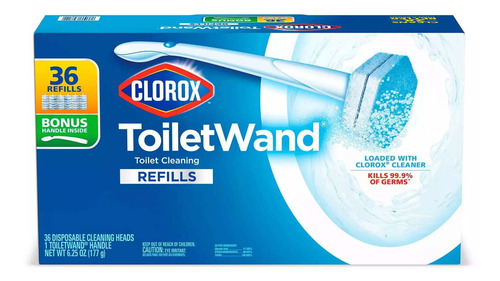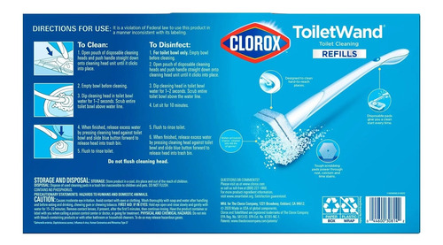 O pacote de refil desinfetante Clorox ToiletWand é pré-carregado com 4x a poderosa ação de limpeza do Clorox Cleaner em cada cabeça de limpeza descartável. O sistema de varinha do banheiro permite que você clique em uma esponja como a cabeça na varinha, esfregue para liberar o limpador pré-carregado e jogue a cabeça fora. Essas cabeças de limpeza descartáveis matam germes, removem ferrugem, cálcio e calcário enquanto desinfetam, desodorizam e limpam profundamente com facilidade. Com base em testes comparativos de laboratório, a varinha limpa melhor do que uma escova. A poderosa cabeça de limpeza desinfetante é moldada para que você lide com cada mancha e cada crescimento repugnante sob as áreas de difícil acesso da borda da tigela enquanto mata 99,9% dos germes como staphylococcus aureus, salmonela enterica, rinovírus tipo 37 e gripe.