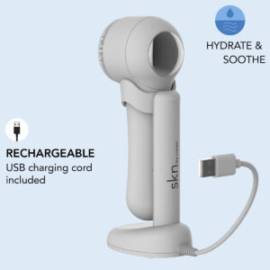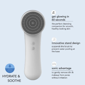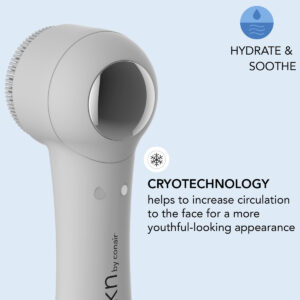 Escova de limpeza facial avançada skn by conair Cryotherapy, com cabeça de escova de silicone ultra-higiênica e placa térmica para ajudar a aliviar a inflamação e reduzir o inchaço – escova de limpeza facial que hidrata e acalma: limpe e esfolie para revelar o brilho natural da pele com este sistema de 2 etapas que diminui o embotamento. Clinicamente comprovada e testada dermatologicamente com estudos de laboratório que comprovam a eficácia da crioterapia – Escova de limpeza facial de silicone: as cerdas macias são suaves para a pele e ultra-higiênicas, portanto, a cabeça da escova nunca precisa ser substituída. Limpar com a escova é duas vezes mais eficaz do que lavar com as mãos. – Placa de metal Cool Touch: localizada na parte inferior da escova facial, fornece um estimulante criofacial que reduz visivelmente o inchaço e revela uma redução de 30% no tamanho dos poros. – Perfeita para todos os tipos de pele: suave o suficiente para usar como parte de uma rotina diária de cuidados com a pele. – Recarregável por USB e à prova d'água: fácil de manter carregada com o fio incluído e segura de usar dentro ou fora do chuveiro. Guarde sua escova facial Cryo no novo design de suporte que suspende a escova facial acima da base para evitar que a água se acumule.