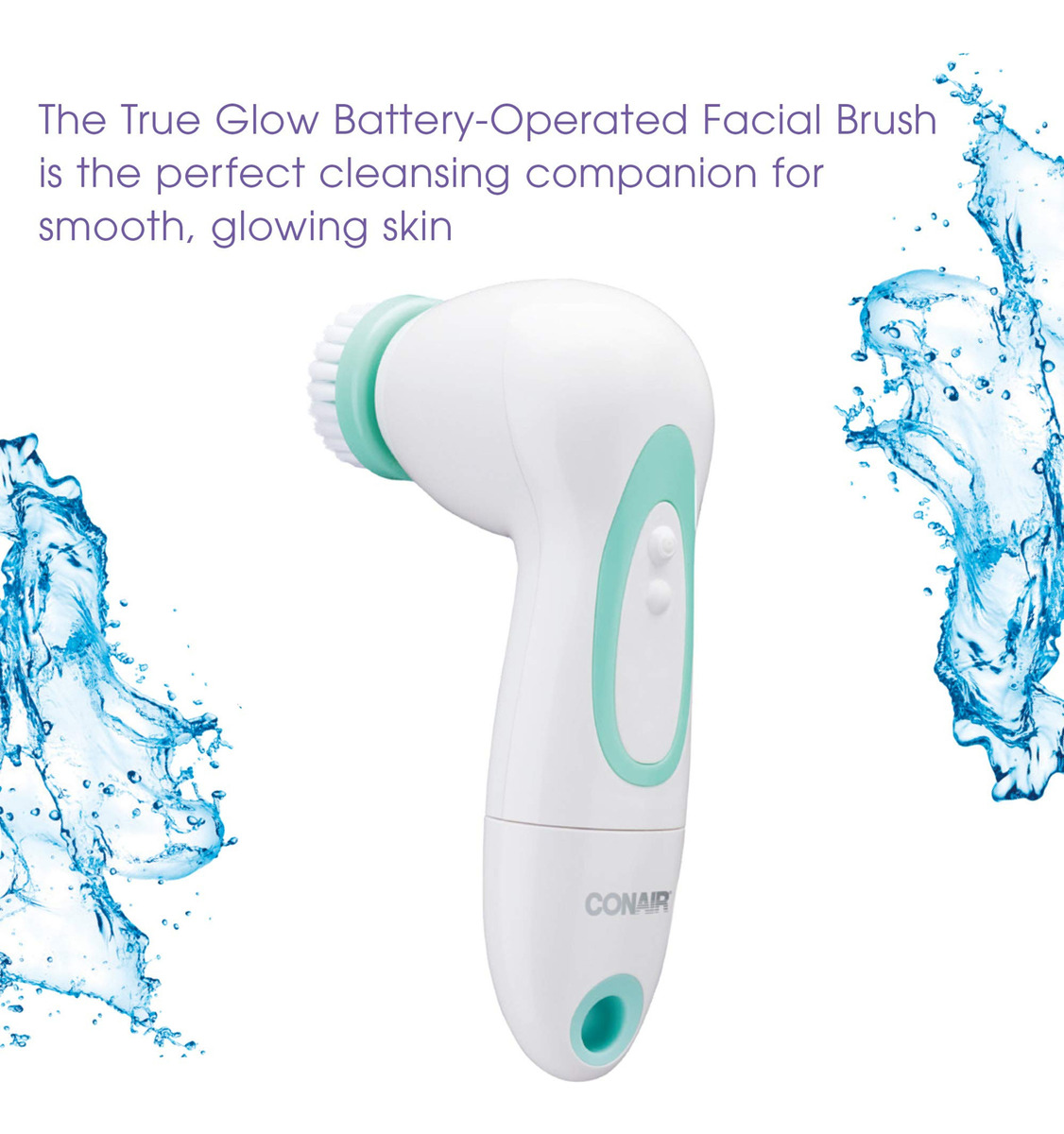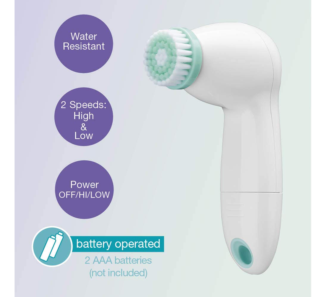 Escova de limpeza facial operada por bateria True Glow by Conair — New Spin On Clean: nossa escova de limpeza facial de 2 velocidades possui uma cabeça de escova giratória de 360 graus, é resistente à água e inclui 3 acessórios de escova facial para esfoliar e limpar suavemente; funciona com bateria; requer 2 pilhas AA (não incluídas) – Best Face Forward: a escova facial operada por bateria True Glow by Conair é a companheira de limpeza perfeita para uma pele macia e brilhante; revela uma pele com aparência saudável 60 segundos — Essenciais para cuidados com a pele brilhante: o Conair facilita o cuidado da pele em casa; gentilmente e remova completamente a sujeira, o óleo e a maquiagem; limpe, esfolie e hidrate para uma experiência completa de spa em casa; use com seu limpador favorito para uma pele brilhante – Experiência total de spa em casa: de pincéis de limpeza sônica e vaporizadores faciais a tratamentos com parafina, dispositivos de fototerapia e muito mais, as ferramentas de cuidados com a pele Conair True Glow ajudam a tornar cada dia um dia de spa – Cuidados pessoais da Conair: nossa linha de cuidados pessoais inclui skins de alta qualidade ferramentas de cuidado, espelhos iluminados, kits de corte de cabelo, aparadores de barba e bigode e aparadores de orelha/nariz, barbeadores femininos e higiene bucal; Conair faz ferramentas de cuidados pessoais para sua rotina diária