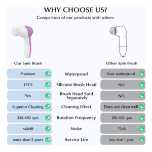 – LIMPA E SUAVIZA A PELE COM EFICIÊNCIA: O esfoliante facial elétrico retira a poeira até os poros de forma eficaz. A cabeça do depurador facial de silicone esfolia suavemente, o excelente material contribui para uma drenagem rápida e mantém a escova facial portátil limpa, o que evita os problemas de pele de forma eficaz. Usar a escova de limpeza facial elétrica por longo prazo ajudará a diminuir os poros, reduzir cravos e espinhas e ter uma pele delicada e macia