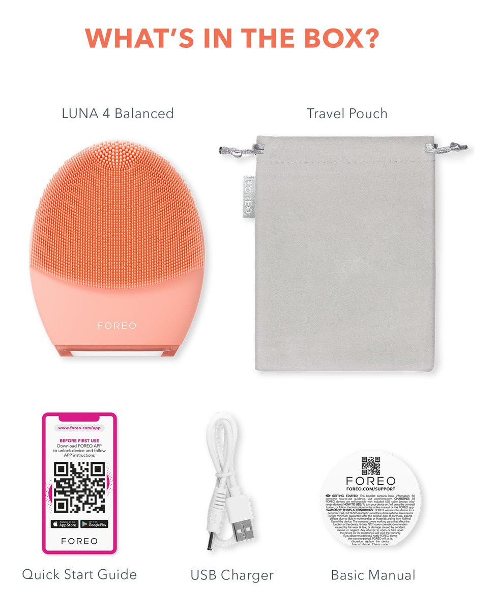 Escova de limpeza facial FOREO LUNA 4 | Massageador facial firmador | Cuidados faciais antienvelhecimento | Melhora a absorção de produtos para cuidados com a pele facial | Ferramentas simples para cuidar da pele | Pele balanceada – LIMPEZA SUAVE, REGULAR E PROFUNDA Longe dos produtos comuns para o cuidado da pele, o silicone e 16 intensidades de pulsações T-Sonic removem com eficácia 99,5% da sujeira, óleo, suor e resíduos de maquiagem em um minuto – MASSAGEM REAFIRMANTE DIRECIONADA A escova facial de silicone funciona como um massageador reafirmante com 4 tratamentos de rejuvenescimento de baixa frequência guiados por aplicativo e 5 tratamentos manuais de rejuvenescimento para uma pele fresca e jovem a cada dia. – SILICONE ULTRA-HIGIÊNICO 35 vezes mais higiênico do que uma escova facial com cerdas de náilon. – ABSORÇÃO APRIMORADA Uma fusão 2 em 1 de massagem T-Sonic e silicone macio serve como uma preparação esfoliante facial perfeita para maior absorção de ativos preciosos de produtos de cuidado da pele para máxima eficácia – PARA OBTER MELHORES RESULTADOS, use o modo de limpeza com um limpador de microespuma cremoso e rico em antioxidantes. Use sulcos reafirmantes nas costas com o sérum repleto de esqualano e HA para obter melhores resultados