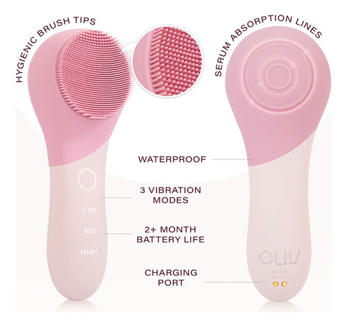 Descubra a melhor experiência de cuidado com a pele com a escova de limpeza facial Oliv Sonic, sua escova esfoliante facial ideal para revelar uma pele radiante. Nossos pincéis faciais para limpeza utilizam tecnologia avançada de vibração sônica e pontas de silicone ultra-higiênicas, tornando-os um excelente pincel de limpeza facial que elimina até 99% da sujeira, óleo e células mortas da pele. O lavador facial vibratório Oliv é muito mais do que apenas uma ferramenta de limpeza facial. Isso transforma sua rotina de cuidados com a pele em um ritual relaxante de autocuidado. É um limpador facial com escova giratória que ilumina, suaviza e firma a pele, ao mesmo tempo em que aborda as principais questões, como embotamento, linhas finas e acne. Equipada com três níveis de intensidade, a ferramenta facial Oliv Cleaning Brush se adapta às necessidades exclusivas da sua pele. Se seu objetivo é limpar a pele sensível, firmar a pele flácida, reduzir as erupções de acne ou minimizar os poros dilatados, a escova de limpeza facial Olivs é a sua resposta. Como uma escova facial inovadora, Oliv apresenta um verso exclusivo que massageia seus soros favoritos na pele. Em apenas 90 segundos, melhora a absorção, firma a pele e aumenta o fluxo sanguíneo, proporcionando um brilho radiante. Projetada pensando no luxo, esta escova de limpeza facial em que homens e mulheres podem confiar tem um design à prova d’água e uma extraordinária duração de bateria de 2 meses. Com cerdas de silicone de 5 mm líderes do setor, Oliv oferece uma experiência de esfoliação suave e eficaz para sua pele. Se você é um usuário de escova de lavagem facial para mulheres ou homens ou está procurando um esfoliante facial eletrônico, Oliv está aqui para elevar sua rotina de cuidados com a pele. Experimente a diferença de Oliv hoje. – ENCONTRE SEU BRILHO COM LIMPEZA SÔNICA: Desbloqueie sua melhor pele com Oliv. Usando tecnologia avançada de vibração sônica e pontas de silicone ultra-higiênicas, nossa escova de limpeza facial remove de forma suave e eficaz até 99% da sujeira, óleo e células mortas da pele, para uma pele mais saudável e radiante. – BELEZA É UMA SENSAÇÃO: A escova esfoliante facial Oliv ilumina, suaviza e firma sua pele, abordando questões importantes, como opacidade, linhas finas e acne. Transforme sua rotina de cuidados com a pele em um ritual de autocuidado com vibrações suaves. Entre em um mundo onde a beleza é mais do que uma aparência, é uma sensação. – 3 modos personalizados para você: com 3 níveis de intensidade, o lavador facial Oliv Brush pode ser personalizado de acordo com as necessidades exclusivas de sua pele, desde limpar a pele sensível até firmar a pele flácida, reduzir as erupções de acne e minimizar a aparência de poros dilatados. – MODO ANTIENVELHECIMENTO INOVADOR: A escova facial Oliv possui um lado reverso exclusivo para massagear sua pele favorita soros. Apenas uma rotina de 90 segundos melhora a absorção, firma a pele e aumenta o fluxo sanguíneo para um brilho radiante de oliva. Experimente o duplo benefício de limpeza profunda e firmeza da pele em uma escova de limpeza facial. – TOTALMENTE À PROVA D’ÁGUA: Perfeitamente adequada para uso na pia ou no chuveiro, a escova Oliv é certificada com uma classificação IPX7 à prova d’água. Mergulhe na tranquilidade de uma experiência de spa, a qualquer hora e em qualquer lugar. – DESIGN DE LUXO: os pincéis faciais Olivs para limpeza e esfoliação oferecem luxo com seu design à prova d’água e bateria de 2 meses de duração, proporcionando cuidados com a pele sem esforço, seja no chuveiro ou na pia. As cerdas de silicone de 5 mm da Olive, líderes de mercado, proporcionam uma limpeza e esfoliação suaves e poderosas da pele.