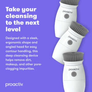 Escova de limpeza facial Proactiv Charcoal — Esfoliante giratório e esfoliante facial com cerdas com infusão de carvão vegetal para limpeza profunda da pele — Resistente à água — PODER DE LIMPEZA PROFUNDA DO CARVÃO VEGETAL — Esta escova completa de limpeza facial foi projetada para ser mais fácil e eficaz do que lavar o rosto com as mãos. – DIGA OLÁ À SUA NOVA PELE — O uso regular de um esfoliante facial pode ajudar a pele a parecer mais macia, suave e mais radiante. – Segura para todas as idades e tipos de pele – A cabeça cônica da escova remove suavemente as impurezas sem irritar a pele. – SPIN FOR PELE PERFEITA — Este produto essencial para a pele oferece rotação contínua de 360 graus que ajudará sua pele a ter a melhor aparência. — RESISTENTE À ÁGUA — Porque sabemos que algumas de suas melhores ferramentas faciais funcionam no chuveiro.