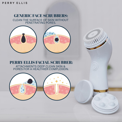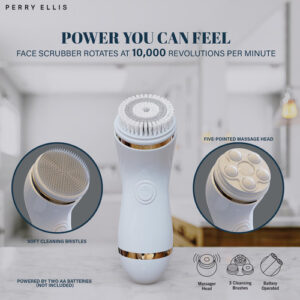 • Suave para pele áspera, macia e sensível: A escova de massagem e limpeza facial 4 em 1 Perry Ellis para mulheres possui acessórios de cabeça suaves projetados para serem macios para uma ação de limpeza poderosa.