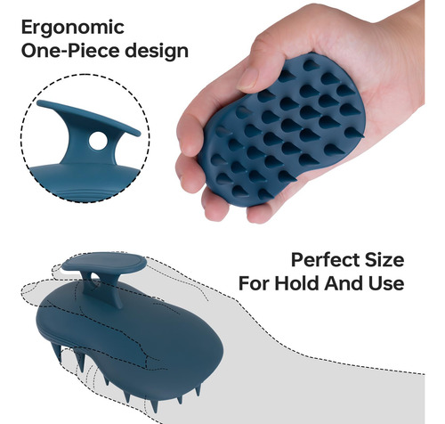 – Cerdas macias de silicone – As cerdas 100% de silicone são muito macias e podem caber em qualquer formato de cabeça sem enrolar ou puxar o cabelo. Essas cerdas também podem limpar e massagear seu couro cabeludo com eficácia sem nenhum desconforto.