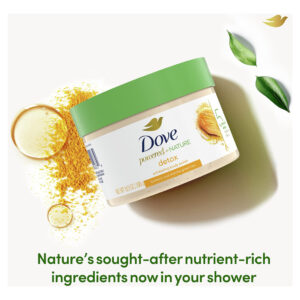 Desintoxicação corporal esfoliante Dove Powered By Nature com 5 ingredientes de origem natural. Mistura de 5 ingredientes de origem natural para cuidados com a pele 10,5 onças – 5 ingredientes de origem natural: este esmalte corporal é feito com uma mistura de 5 ingredientes de origem natural de prolipídios, hidratante, limpador, mistura de extrato natural e óleo de moringa 100% natural – 98% FÓRMULA BIODEGRADÁVEL: 98% dos ingredientes deste esfoliante corporal se decompõem em dióxido de carbono, água e minerais (OMétodos de teste ECD (301, 302 e/ou 310) – FEITO COM: Este esfoliante corporal é feito com açafrão, chá verde matcha e gengibre – COMO FAZER USO: Use este esfoliante corporal natural 3 a 4 vezes por semana como um limpador de pele suave, massageando a pele úmida antes de enxaguar. – PELE FLEXÍVEL: o esmalte corporal esfoliante Dove Detox esfolia suavemente e remove as impurezas enquanto reabastece a pele