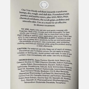 Nosso esfoliante corporal KP 3 em 1 transforma instantaneamente a pele esburacada, seca, áspera e sem brilho. Formulado com ésteres de pedra-pomes e jojoba, além de esfoliantes químicos AHA/BHA/PHA, o esfoliante agarra, dá brilho e suaviza a pele. Use como máscara para um tratamento eficaz no chuveiro. Desenvolvido para a maioria dos tipos de pele. O que ele faz Transforma instantaneamente a pele esburacada, seca, áspera e opaca. Funciona para soltar, levantar e dissolver as células mortas da pele e limpar os poros. Melhora a textura e o tom da pele Nível de PH: Nível de pH da fórmula: 4,25 – 4,75 Nossa missão é criar produtos de pele clinicamente eficazes e acessíveis, formulados com ingredientes naturais potentes e ingredientes sintéticos avançados. Os produtos Naturium utilizam níveis eficazes de ingredientes ativos, são adequados ao nível de pH e são exaustivamente testados quanto à segurança. O teste de contato é recomendado para todos os produtos antes do uso. – MELHORANDO O TOM E A TEXTURA: Nosso esfoliante corporal KP 3 em 1 transforma instantaneamente a pele esburacada, seca, áspera e opaca. Funciona para soltar, levantar e dissolver as células mortas da pele e limpar os poros – FÓRMULA CONCENTRADA E PODEROSA: Nossa fórmula de esfoliante e máscara é desenvolvida com ésteres de pedra-pomes e jojoba, além de esfoliantes químicos AHA/BHA/PHA, e funciona para segurar, polir e suavizar a pele – A maioria dos tipos de pele: perfeita para peles secas, envelhecidas, sensíveis e mistas, 1 a 2 vezes por semana, como tratamento no chuveiro. Aplique na pele molhada, massageie suavemente com as pontas dos dedos e enxágue após alguns minutos. Um teste adesivo é recomendado antes do uso – FORMULADO COM ORGULHO: todos os nossos produtos são formulados para serem adequados ao nível de pH, veganos, sem crueldade, sem parabenos, sem glúten, compatíveis com a pele e testados por dermatologistas. A maioria dos nossos cuidados com a pele é livre de fragrâncias sintéticas – CUIDADOS COM A PELE QUE FUNCIONAM: Na Naturium, temos o compromisso de fornecer produtos essenciais para a pele a preços acessíveis que usam apenas ingredientes que beneficiam diretamente a saúde da pele, que apoiam a integridade e a eficácia de nossas formulações
