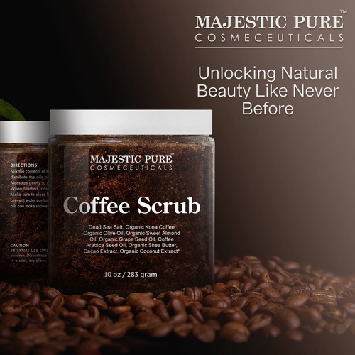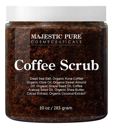 Esfoliante de café arábica Esfoliante corporal natural para celulite, veias de aranha, eczma… Diga adeus à celulite e a outras manchas na pele enquanto desfruta do aroma revigorante do café! O esfoliante de café arábica MAJESTIC PURE é natural e formulado especificamente para combater ativamente a celulite, estrias, acne e eczema com cafeína apenas dos melhores grãos de arábica; misturado com óleos e sais altamente hidratantes, regeneradores e esfoliantes e açúcar mascavo; os melhores benefícios naturais do esfoliante de café arábica MAJESTIC PURE incluem: ajuda a reduzir a aparência de celulite, eczema e estrias, manchas da idade, varizes e psoríase Reduz a pele morta, acne, espinhas, cravos, erupções cutâneas e outras manchas na pele Hidrata e hidrata a pele Nutre e protege a pele, promovendo o reparo e o rejuvenescimento celular. O esfoliante corporal MAJESTIC PURE Arabica Coffee é natural e especificamente formulado e misturado com óleos e sais altamente hidratantes, regeneradores e esfoliantes. É fabricado nos Brasil no laboratório GMP. [Declaração da FDA]: Essas declarações não foram avaliadas pela Food and Drug Administration. Este produto não se destina a diagnosticar, mitigar, tratar, curar ou prevenir qualquer doença. Clique no botão no topo desta página para comprar com confiança. – O esfoliante de café arábica MAJESTIC PURE é natural e formulado especificamente para celulite, estrias, veias de aranha, acne, manchas da idade e eczema com cafeína apenas dos melhores grãos de arábica; misturado com óleos e sais altamente hidratantes, regeneradores e esfoliantes; para homens e mulheres; fabricado nos Brasil no laboratório GMP – Cafeína presente neste premium O depurador é conhecido por ajudar a estimular o fluxo sanguíneo e ajudar a reduzir a aparência de celulite, eczema, estrias e manchas da idade; a cafeína é comumente usado em cremes para celulite – Aviso de segurança: somente para uso externo; mantenha fora do alcance de crianças e animais de estimação: possível sensibilidade da pele – Use uma pequena quantidade primeiro em uma pequena área (dentro das áreas do cotovelo) para testar; interrompa o uso se ocorrer desconforto ou irritação; evite contato com os olhos; consulte seu médico antes de usar em locais com lesões, queimaduras, eczema ou dermatite; se estiver grávida, amamentando ou sob orientação médica, consulte seu médico antes de usar este produto – o óleo de coco hidrata e hidrata a pele; manteiga de karité e a manteiga de cacau é rica em antioxidantes que nutrem e protegem a pele. O sal do Mar Morto é uma excelente desintoxicação da pele conhecida por ajudar a reduzir a pele morta e outras manchas na pele por meio da esfoliação; suave, pode ser usado em áreas sensíveis como rosto e lábios – o esfoliante de café arábica MAJESTIC PURE é livre de crueldade e não é testado em animais