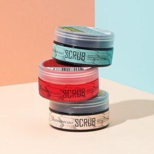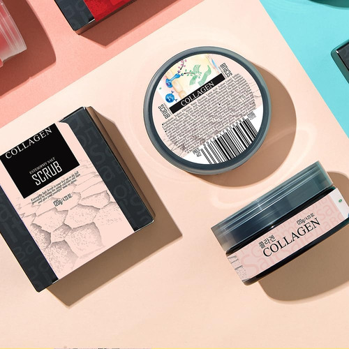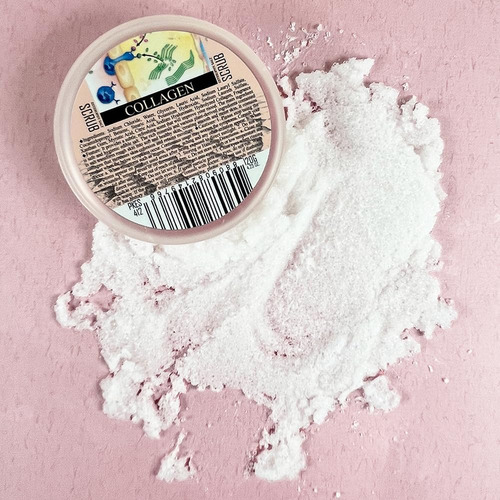 • Uma esfoliação de massagem de sal de colágeno que pode ser usada em todo o corpo, incluindo o rosto.