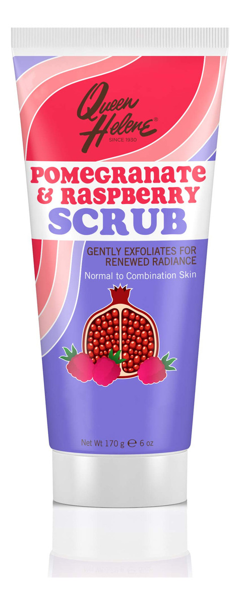 Esfoliante facial Queen Helene, romã e framboesa, 6 onças [a embalagem pode variar] — Um tubo de 6 onças de esfoliante facial de romã e framboesa — Misturado com sementes de framboesa para limpar e esfoliar suavemente o rosto — Contém romã antioxidante para combater os radicais livres que entorpecem a pele — Perfeito para pessoas com pele normal a mista — Nunca testado em animais