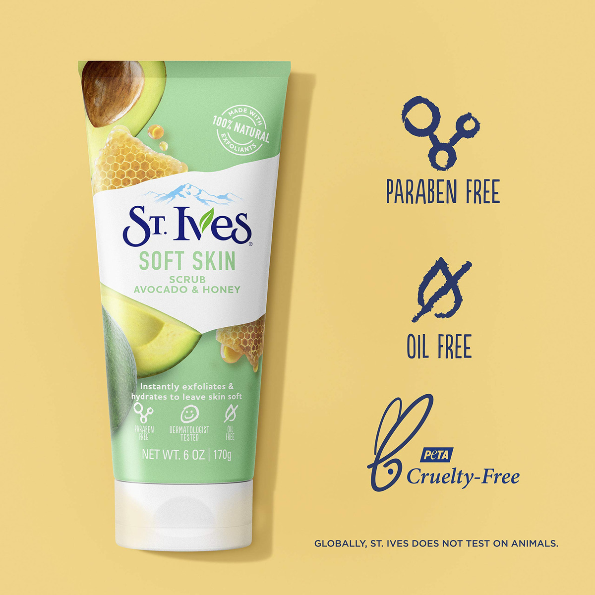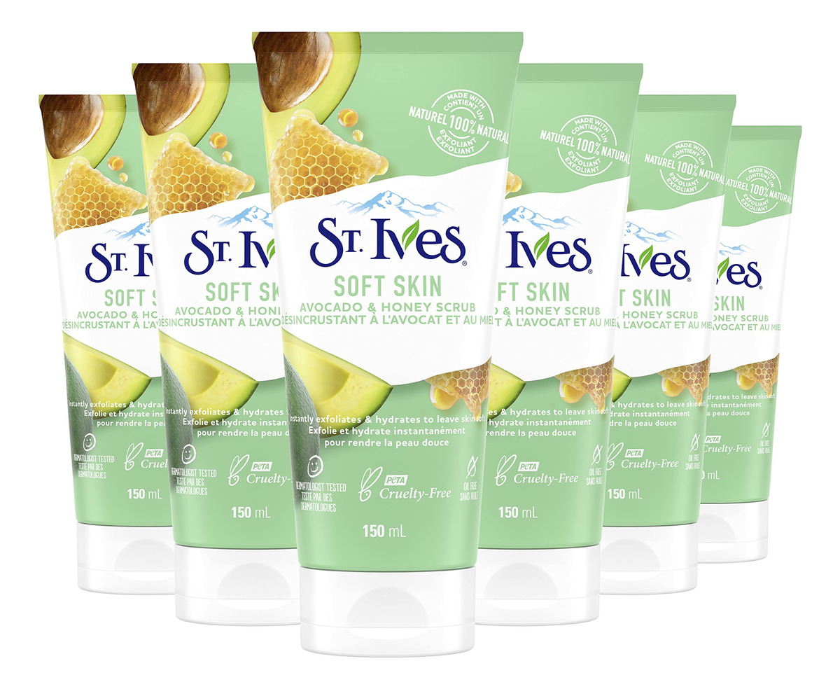 Esfoliante facial St. Ives Soft Skin, esfoliante moderado de abacate e mel para pele macia e suave, esfoliante facial sem óleo feito com esfoliantes 100% naturais, 6 onças, pacote com 6 — Revele uma pele macia e macia: esfoliação facial St. Ives Soft Skin com mel e abacate, feito com extrato 100% natural de mel e abacate, esfolia e hidrata instantaneamente para deixar a pele macia. – ESFOLIAÇÃO MODERADA: O esfoliante facial natural contém esfoliantes 100% naturais (pó de casca de noz e farinha de milho) para suavizar o ressecamento e revelar uma pele macia e uniforme. – ABACATE E MEL: Este esfoliante facial natural apresenta o extrato de abacate amanteigado, reconhecido por suas propriedades hidratantes, e mel, conhecido por seus benefícios nutritivos. – LIVRE DE: St. Ives Soft Skin Face Scrub Honey & Avocado é testado por dermatologistas, sem parabenos, não comedogênico (não obstrui os poros) e sem óleo. – CUIDADOS COM A PELE APROVADOS PELA PETA: O esfoliante facial natural é aprovado pela PETA. Globalmente, St. Ives não testa em animais. – COMO FAZER: Espalhe o esfoliante facial em pequenos movimentos circulares com os dedos para esfoliar e despertar a circulação natural da pele. Quando terminar, enxágue e brilhe!