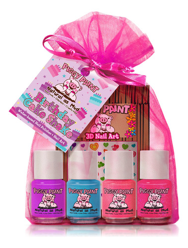 O esmalte PIGGY PAINT não é tóxico, praticamente inodoro e seguro para todas as idades! Além disso, um arco-íris de cores divertidas que são veganas e livres de crueldade. Esta fórmula premium à base de água seca até obter um acabamento duro e não lava nem descasca. PIGGY PAINT é uma marca que as mães conhecem e confiam. Esses 4 mini esmaltes de 0,25 onças são TODOS divertidos, sem nenhum produto químico agressivo e fedorento! É hora de um shake de bolo de aniversário! – FÓRMULA NÃO TÓXICA À BASE DE ÁGUA Melhor que 10 grátis ou 17 grátis porque é livre de todos os produtos químicos agressivos. Vegano + Livre de crueldade + Ecológico. SEM resina de formaldeído ou formaldeído, SEM tolueno, SEM ftalatos, SEM parabenos, SEM sulfatos, SEM acetona, SEM bisfenol A, SEM acetato de etila, SEM cânfora, SEM álcool, SEM etil tosilamida, SEM éter glicol da série E, SEM etoxilato de nonilfenol, SEM fosfato de trifenil, SEM xilato de trifenil Eno, sem estireno, sem glúten. — INODORO Como o esmalte Piggy Paint é uma fórmula à base de água, ele é praticamente inodoro em comparação com as alternativas à base de solvente. – ADEQUADO PARA CRIANÇAS E SEGURO PARA TODAS AS IDADES, o Piggy Paint é o esmalte infantil #1 do mercado, uma marca premium que os pais conhecem e confiam, e foi criado por uma mãe! Este esmalte à base de água é seguro para mães grávidas e lactantes, para uso em bebês, bebês e crianças pequenas. – MINIFRASCOS – Cada frasco tem 0,25 onças (7 ml). Contém 4 esmaltes e arte de unhas em 3D. Este lindo conjunto de presentes é o presente de aniversário perfeito. TODA a diversão, sem produtos químicos agressivos! – ACABAMENTO DURO E DURÁVEL QUE NÃO DESCASCA PARA MELHOR USO. Seque as unhas polidas por 1 minuto com o secador de cabelo na configuração de aquecimento quente/ventilador baixo. Use o Piggy Paint Basecoat para máxima resistência a lascas. O acabamento Piggy Paint Shine adiciona brilho e resistência a arranhões.
