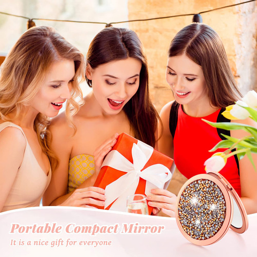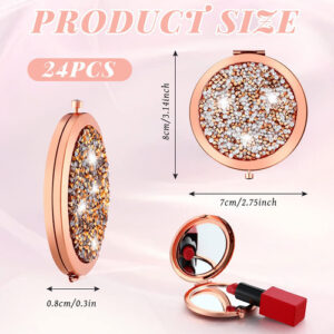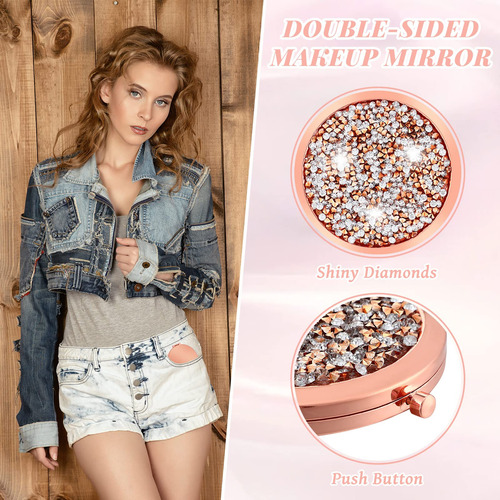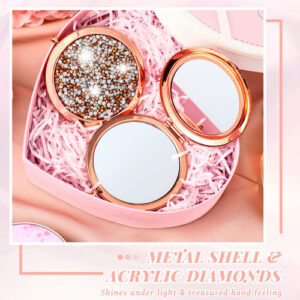 Características: Quantidades abundantes: Você receberá vários pequenos espelhos de aumento em cores retrô, quantidade suficiente para você usar ou substituir na vida diária, além de poder compartilhá-los com seus amigos, familiares ou vizinhos. Ocasiões aplicáveis: estes elegantes espelhos compactos redondos são portáteis devido ao tamanho compacto. Você pode usá-los em muitos lugares, como casa, festa, escritório, hotel, escola, banheiro ou outros lugares, ajudando você a observar a maquiagem do rosto ou o cabelo. Especificações: Material: metal, espelho HD, cristal Cor principal: ouro rosa Tamanho: aproximadamente 2,75 polegadas de diâmetro e 0,3 polegadas de espessura O pacote inclui: 24 espelhos cosméticos compactos Notas: Medição manual, permita pequenos erros de tamanho. A cor pode haver uma pequena diferença devido às diferentes telas. – Conjunto de espelhos compactos: você receberá 24 peças de espelhos cosméticos compactos, charmosos e adoráveis, adequados para a maioria das mulheres e meninas; eles têm 2,75 polegadas de diâmetro e 0,3 polegadas de espessura. O tamanho certo permite colocá-los em sua bolsa, bolsa ou bolso – Funções ampliadas: este pequeno espelho de maquiagem para bolsa tem 2 tipos diferentes de lentes, um é um espelho plano HD que permite que você verifique sua aparência geral de maquiagem, o outro é um espelho de aumento duplo, você pode ver os detalhes melhor – Design requintado: o espelho de maquiagem de bolso é em ouro rosa vintage com vários pequenos diamantes na superfície para uma aparência mais brilhante e luxuosa, que pode combinar bem com sua bolsa e mostrar seu gosto – Robusto e resistente a quebras: o espelho compacto de noiva é feito de metal de qualidade, espelho HD e material de cristal, que se sente bem na mão, é resistente, estável e não quebra facilmente; este espelho de bolsa feminino não é apenas adequado para uso diário, mas também para reuniões, casamentos e festas para manter sua boa aparência. Boa opção de presente: espelhos de bolso para mulheres são boas opções para presentear. Você pode dá-las aos seus entes queridos em encontros, festas, shows ou aniversários. Além disso, esses espelhos podem ser aplicados em despedidas de solteiro, presentes de casamento ou chá de panela