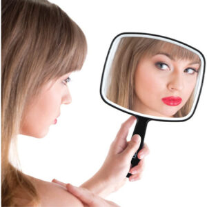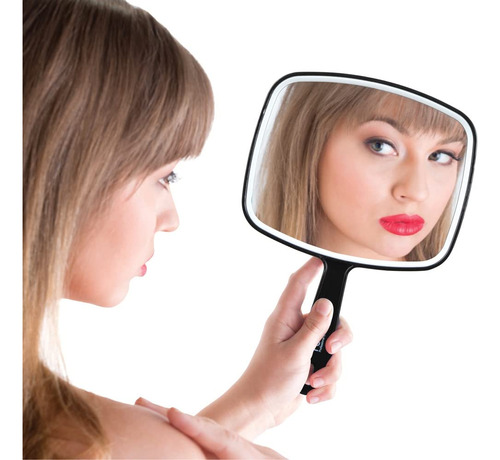 Espelho de mão ForPro Professional Collection Premium com alça, 6,3" L x 9,6" L, espelho portátil multiuso com reflexo sem distorção, preto – Espelho portátil: possui uma alça longa e confortável e uma grande face quadrada. – Espelho de maquiagem premium: fornece um reflexo claro sem distorção. – Espelho de mão quadrado: o espelho é envolto em uma moldura preta sólida feita de plástico grosso. – Espelho de mão: possui um orifício para pendurar para facilitar o armazenamento. – Use como espelho de viagem: leve, pesa apenas 6 onças. Dimensões: 6,3 L x 9,6 L