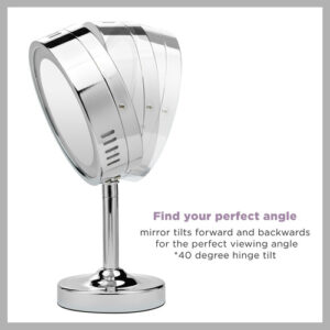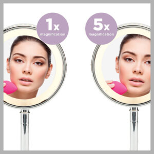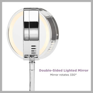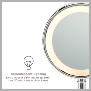 Espelho de maquiagem iluminado Conair com ampliação, espelho de maquilhagem LED, espelho de aumento 1X/5X, espelho de dupla face, com fio em cromo polido – Espelho de maquiagem iluminado de dupla face: este espelho de maquiagem iluminado de dupla face usa luz incandescente que fornece uma luz halo suave, perfeita para uma visualização nítida. – Espelho de maquiagem Picture Perfect: este espelho de maquiagem iluminado de dupla face possui uma ampliação de 1X e 5X, perfeito para uma visualização nítida. limpeza e higiene com precisão e exatidão. Ele gira 330 para se ajustar a qualquer ângulo para facilitar a visualização. – Ambiente elegante: este espelho de 6" apresenta um elegante acabamento cromado polido que complementa qualquer decoração. O interruptor On/Off está convenientemente localizado no cabo de linha de 5 pés. O reflexo ficará distorcido/invertido se não estiver a menos de 6" do espelho. – Reflexões: os espelhos Conair Reflections estão disponíveis em uma variedade de tamanhos, estilos e acabamentos, com uma variedade de ampliações e configurações de luz para aprimorar suas rotinas diárias de maquiagem e higiene. Opções operadas por bateria ou cabos de linha disponíveis. – Ferramentas de beleza da Conair: nossa linha de ferramentas de beleza inclui ferramentas de alta qualidade, desde pincéis faciais, aplicadores de maquiagem, tratamentos de fototerapia, ferramentas de manicure/pedicure, soluções de spa e espelhos de maquiagem iluminados. A Conair fabrica ferramentas para todas as suas necessidades de beleza!