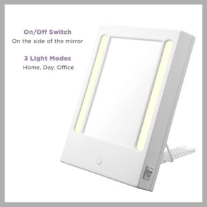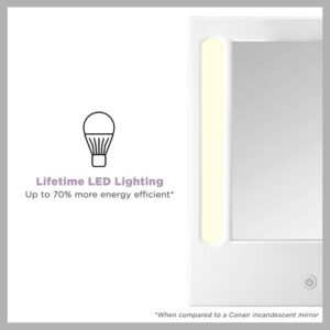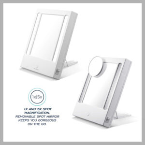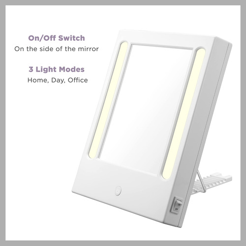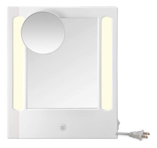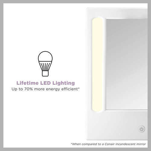Espelho de maquiagem iluminado Conair com ampliação de 5X, espelho de maquilhagem LED, espelho de aumento 1X/5X, espelho de mesa, com fio em branco brilhante – Espelho de maquiagem iluminado de face única: este espelho de maquiagem iluminado de face única plug-in usa uma lâmpada LED vitalícia que economiza energia e é 70% mais eficiente em termos energéticos em comparação com um espelho incandescente Conair. Ele fornece luz forte e as lâmpadas nunca se queimarão. – Espelho de maquiagem Picture Perfect: este espelho de maquiagem iluminado possui ampliação de 1X e espelho spot removível de 5X, perfeito para pinçar e pentear com precisão. Incline para qualquer ângulo para aperfeiçoar sua aparência. Escolha entre 3 modos de iluminação para casa, dia e escritório. – Ambiente elegante: este espelho retangular apresenta um elegante acabamento em plástico branco que complementa qualquer decoração. O botão On/Off está convenientemente localizado na parte frontal do espelho. O reflexo ficará distorcido/invertido se não estiver a menos de 6" do espelho. – Reflexões: os espelhos Conair Reflections estão disponíveis em uma variedade de tamanhos, estilos e acabamentos, com uma variedade de ampliações e configurações de luz para aprimorar suas rotinas diárias de maquiagem e higiene. Opções operadas por bateria ou cabos de linha disponíveis. – Ferramentas de beleza da Conair: nossa linha de ferramentas de beleza inclui ferramentas de alta qualidade, desde pincéis faciais, aplicadores de maquiagem, tratamentos de fototerapia, ferramentas de manicure/pedicure, soluções de spa e espelhos de maquiagem iluminados. A Conair fabrica ferramentas para todas as suas necessidades de beleza!