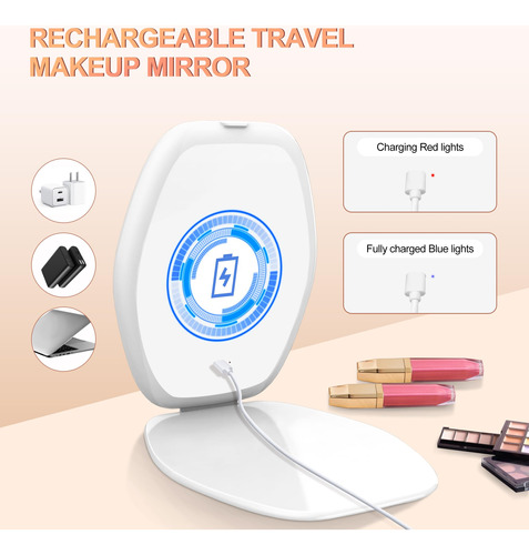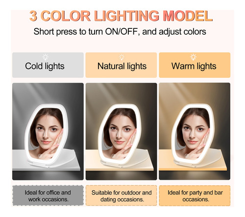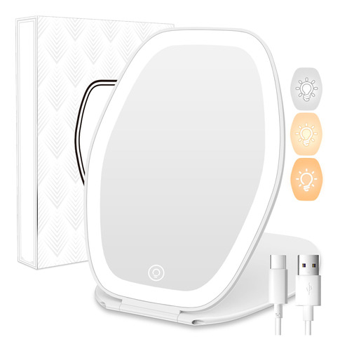 Espelho De Maquiagem Cosyglow Travel W/ Light 3 Color Led Wh