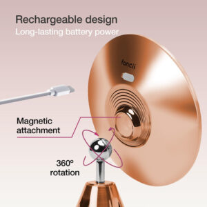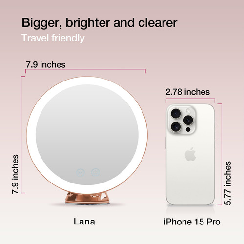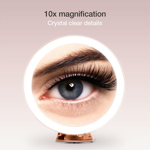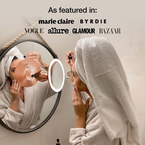 Espelho de maquiagem Fancii iluminado por LED de 10X, recarregável – 3 configurações de luz tricolor reguláveis, espelho de sucção, acabamento metálico, espelho de banheiro de viagem sem fio – Lana (ouro rosa) – Iluminação tricolor – 3 configurações de luz LED (branco quente, neutro e luz natural) com brilho regulável garantem que sua maquiagem esteja correta em qualquer ambiente. – Ampliação poderosa de 10x – A grande lupa ultrarrefletiva de 17 cm de largura permite que você se concentre em uma área específica do rosto, ideal para aplicações de maquiagem, cuidados com a pele rotineiros e precisos pinça. – De longa duração – Até 10 horas de luz brilhante que não diminui com a bateria recarregável incluída – economize energia e reduza o desperdício. – Rotação de sucção 360 – O mecanismo de sucção de travamento aprimorado com vedação hermética fornece uma fixação ultra-segura em qualquer superfície lisa. – A rotação 360 é ajustável em qualquer ângulo ou posição desejada. – Pronto para viajar – O design leve e portátil torna este espelho fácil de guardar e conveniente de transportar. você onde quer que vá.
