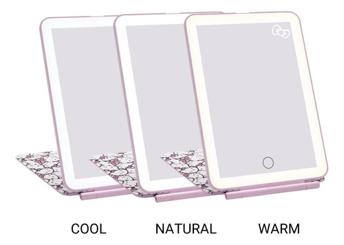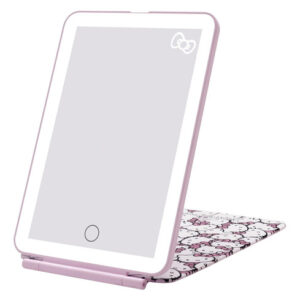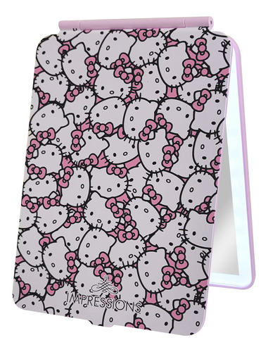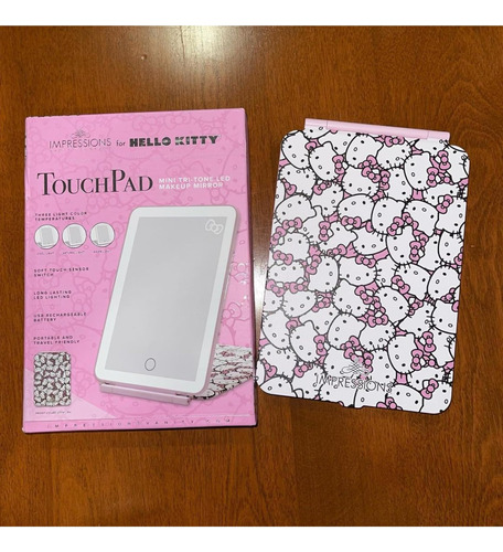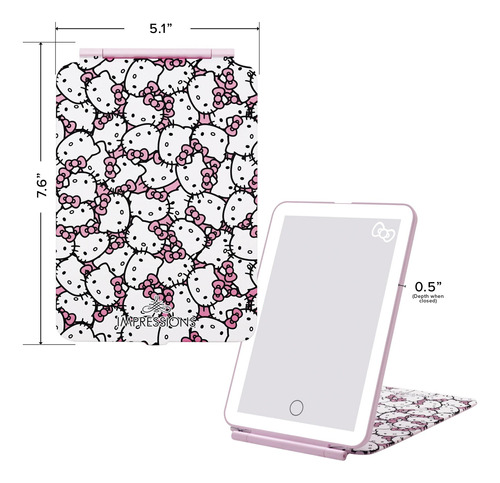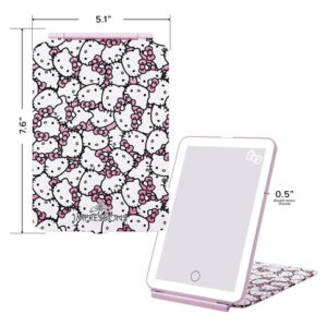 O retoque ficou muito fofo com a maquiagem compacta Hello Kitty Touch Pad Mini Tri-Tone da IMPRESSIONS Vanity, espelho de viagem LED microUSB recarregável superfino. Iluminação consistente com uma faixa de luz LED regulável, o mini espelho de maquiagem LED Hello Kitty Touch Pad Tri-Tone oferece todas as suas necessidades glamourosas para se preparar. Projetado com uma estampa completa da Hello Kitty, esse espelho é diferente de qualquer outro. A capa de fólio fácil de usar protege a qualidade do espelho e também serve como suporte de base. Este espelho de maquilhagem essencial para viagens é leve, compacto e portátil e útil no dia a dia. Existem 3 temperaturas de cor clara para desfrutar: fria, natural e quente. Características: Capa protetora Super Slim Design portátil e ideal para viagens Sensor de toque Interruptor dimmer Sensor de toque Bateria recarregável USB Iluminação LED diurna de longa duração Três temperaturas de cor da luz: luz fria, luz natural, luz quente Dimensões: Largura 5,1 pol. Profundidade de 0,5 pol. Altura 7,6 pol. Peso 1 kg. -: Este adorável espelho de maquiagem vem com o icônico laço Hello Kitty na parte superior do canto direito. Com sua capa flip estampada Hello Kitty, ele pode ser usado como suporte para o espelho e também proteger o espelho quando não estiver em uso. -: Este espelho de maquiagem iluminado apresenta uma faixa de LED de longa duração com três temperaturas de cor: fria, natural e quente. Agora, você pode escolher facilmente o clima de luz desejado e criar uma aparência de maquiagem sofisticada sem problemas de iluminação. -: Este espelho de viagem vem com um interruptor dimmer com sensor de toque localizado no centro do espelho para que você possa ligar e desligar o espelho com um simples toque. Além disso, você pode ajustar o brilho de acordo com as necessidades desejadas. -: Este espelho de maquiagem essencial para viagens é leve, compacto, portátil e útil no dia a dia. Perfeito para atender às suas necessidades de glamour
