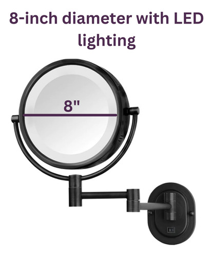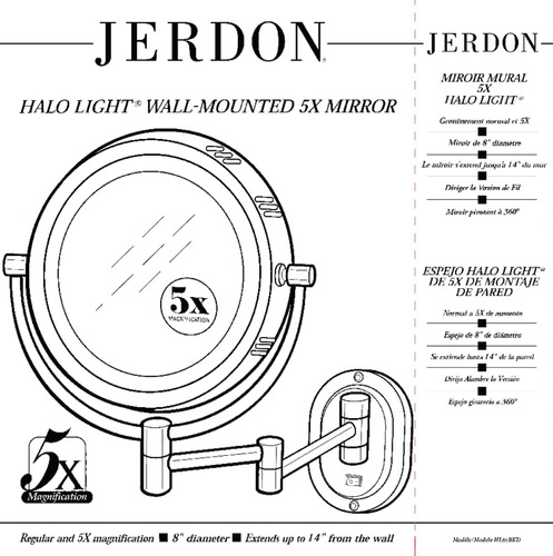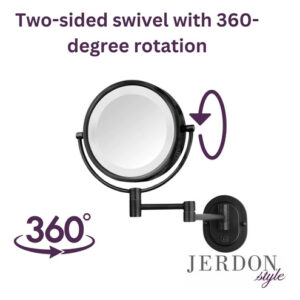 Espelho de maquiagem de parede JERDON com iluminação – Espelho de maquiagem redondo iluminado com suporte de parede preto – Fio direto – Modelo HL65BKD – DESIGN GIRATÓRIO DE MONTAGEM NA PAREDE – Experimente a conveniência de economizar espaço de um espelho de maquiagem montado na parede. Este espelho circular é preso a um braço de 14 polegadas que se estende da parede. Além disso, o espelho de maquiagem apresenta um design giratório suave de 360 graus. O braço extensível combinado com a função giratória torna a aplicação de higiene e maquiagem mais fácil e conveniente. Economize espaço valioso no balcão com este espelho ajustável para montagem na parede – HALO LIGHTING – Este espelho de maquiagem Jerdon possui iluminação halo ao redor do perímetro da moldura circular. Experimente a aplicação e o cuidado perfeitos da maquiagem com a combinação de luzes brilhantes e ampliação de 5X – ESTILO MODERNO – Este espelho pessoal Jerdon montado na parede apresenta um espelho circular acoplado ao braço extensível com acabamento preto. Este espelho de maquiagem moderno fica deslumbrante em qualquer banheiro e economiza espaço. A capacidade giratória e o braço móvel tornam este espelho tão funcional quanto elegante – OPÇÕES DE AMPLIAÇÃO – Este espelho de maquiagem Jerdon tem 2 níveis de ampliação, 1X e 5X. A ampliação de 5X facilita a pinça e a limpeza, enquanto a 1X é perfeita para aplicações básicas de cuidados com a pele e maquiagem. – ESPECIFICAÇÕES – Este elegante espelho pessoal iluminado é perfeito para qualquer banheiro, especialmente aqueles com pouco espaço. Este espelho com acabamento preto inclui um suporte de parede extensível de 14 polegadas e hardware de montagem, permitindo que você economize espaço valioso no balcão. Este espelho de 8" de diâmetro tem iluminação halo, o que o torna ótimo para barbear, pentear, aplicar maquiagem e muito mais! Este espelho de maquiagem Jerdon está protegido por uma garantia de 1 ano