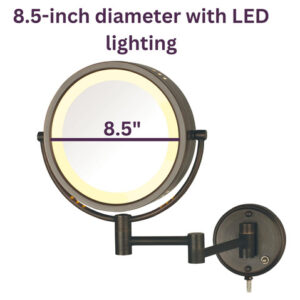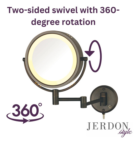 Espelho de maquiagem de parede de dois lados JERDON com luzes – Espelho de maquiagem iluminado com fio direto com ampliação de 8X – Espelho de 8,5 polegadas de diâmetro com acabamento em bronze – Modelo HL75BZD – CONVENIÊNCIA DE MONTAGEM NA PAREDE – Experimente a conveniência de economizar espaço de um espelho de maquiagem montado na parede. Este espelho de maquiagem de arame direto é fácil de instalar e acoplado a um braço de 13,5 polegadas que se estende da parede, economizando espaço. – Design de luxo – Atualize a penteadeira do banheiro com este espelho de maquiagem moderno. A base simples de bronze combinada com a iluminação de halo cria uma aparência contemporânea que certamente impressionará. Este espelho elegante é usado em quartos de hotel de luxo em todo o mundo. – ILUMINAÇÃO HALO – O espelho Jerdon HL75BZD possui iluminação de halo ao redor do perímetro da moldura circular. As lâmpadas LED consomem menos energia e são frias ao toque. Este espelho tem fio direto, o que significa que não há plugue ou cabo de alimentação – OPÇÕES DE AMPLIAÇÃO – Este espelho de maquiagem Jerdon tem 2 níveis de ampliação, 1X e 8X. A ampliação de 8X facilita a pinça e a limpeza, enquanto a 1X é perfeita para aplicações básicas de cuidados com a pele e maquiagem. – ESPECIFICAÇÕES – Este espelho de bronze de 8,5 polegadas de diâmetro inclui um suporte extensível de parede e hardware de montagem de 13,5 polegadas, permitindo que você economize espaço valioso no balcão. Este é um espelho de maquiagem Jerdon com fio direto protegido por uma garantia de 1 ano. O local onde o espelho é montado exigirá uma caixa de junção com um fio elétrico para fornecer luz.