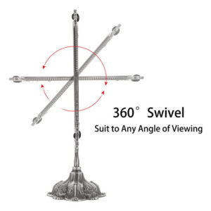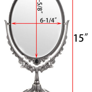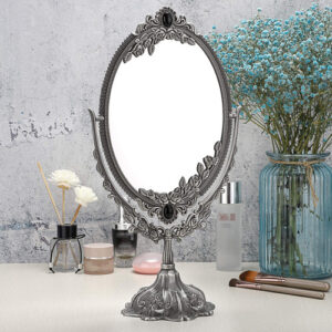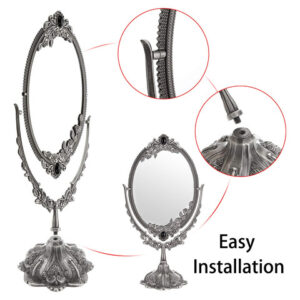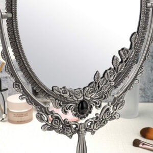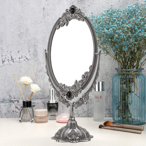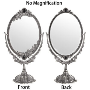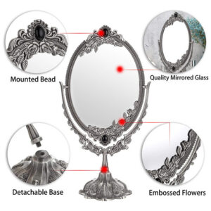 Características: – Espelho giratório de dois lados de 360 graus, adequado para qualquer ângulo de visão. – O design intrincado em torno deste espelho de maquilhagem que lhe confere uma aparência antiga especial. – Estampado com rosas e montado com miçangas confere um toque real – Feito de material premium, durável e não desbota. – A base é removível, conveniente para guardar e transportar. – Com design antiderrapante e mais estável. – Ótimo para maquiagem, barbear, vestir, etc. Especificação: Tipo de espelho: mesa Material do espelho de maquiagem: liga de zinco/vidro de altura: 15" Tamanho do espelho: 6-1/4" x 8-5/8" Base Diâmetro: 4-3/4" O pacote inclui: 1 x espelho de maquiagem oval vintage de dupla face O espelho de maquiagem é frágil. Qualquer problema, sinta-se à vontade para entrar em contato conosco. OBRIGADO POR SUA COMPRA. – Este espelho de formato oval com flores em relevo e franja montada em miçangas e base em forma de pétala, é muito decorativo e funcional. Ele adicionará um toque real à sua cômoda e retocará seu quarto. – Espelho giratório de dois lados de 360 graus, adequado a qualquer ângulo para facilitar a visualização de todo o rosto, imagem clara e perfeita, mais nítida, sem distorção, prático e conveniente. – O espelho de mesa tem uma parte inferior de feltro que serve como dupla finalidade para proteger sua bancada, bem como para evitar que o espelho se mova durante o uso. – O espelho tem cerca de 6-1/4" x 8-5/8" e a base tem 4-3/4" de diâmetro e 15" de altura. – O pacote vem com espelho oval e base, você receberá um espelho de maquilhagem antigo após Simple montagem.