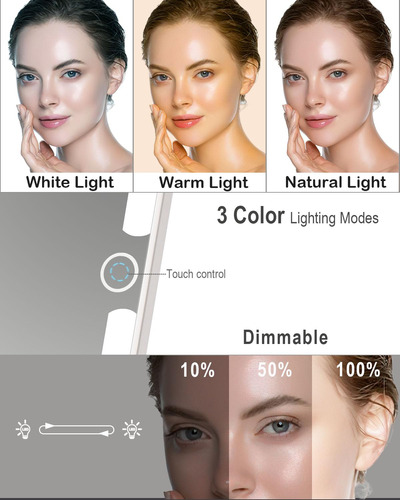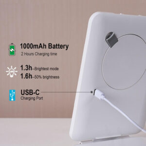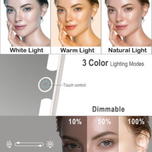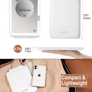 Ilumine sua beleza: com 70 LEDs revestindo as bordas, nosso espelho de maquilhagem iluminado fornece iluminação uniforme para uma aplicação perfeita de maquiagem. Escolha entre 3 configurações de luz para simular ambientes diferentes e obter a aparência perfeita. – Um espelho de aumento 10X de 3 polegadas para close-up: este espelho iluminado é um espelho normal, que vem com um minirespelho redondo de aumento de 10x que clica magneticamente no centro, ajudando você em tarefas de close-up, como pinçar sobrancelhas ou aplicar delineador líquido ou rímel. No entanto, o espelho redondo com zoom de 10X bloqueia uma grande parte do espelho iluminado, portanto, é altamente recomendável usá-lo separadamente, em vez de sempre colocá-lo no vidro. Ele pode ser escondido na parte traseira do espelho enquanto não for usado. – Espelho de mesa super brilhante: mesmo iluminado com 70 LEDs, o espelho de maquilhagem iluminado ilumina suavemente todas as partes do seu rosto igualmente. Com 3 luzes coloridas para escolher, uma luz branca quente é melhor para aplicar maquiagem para sair à noite; um ambiente claro de luz do dia para maquiagem para atividades ao ar livre; e uma luz fria para um dia passado no escritório ou na sala de aula. Este espelho de beleza iluminado permite que você alterne entre as temperaturas da luz para se adequar a uma variedade de aparências e situações. – Espelho do tamanho de um livro Espelho iluminado leve perfeito para viagens: o espelho em si tem apenas 0,7 libras, 5,3 polegadas por 7,6 polegadas de largura e altura e menos de uma polegada de espessura, facilitando a embalagem em uma bolsa ou o armazenamento na bagagem. Suficiente para aplicação de maquiagem e retoques para viagens de trabalho e 2 a 3 dias de viagem de negócios. O espelho de maquiagem iluminado é brilhante o suficiente para uso diário na penteadeira, mas ocupa apenas um pequeno espaço. – Espelho compacto iluminado recarregável: o mini espelho LED é recarregável com bateria de 1000 mAh, você pode usá-lo sem fio. Se você precisar de algo para usar em qualquer lugar, este espelho de viagem iluminado é altamente recomendado. Você não precisa se esforçar com a iluminação, mas, honestamente, ela ajudou muito mais na aplicação de maquiagem do que em um espelho de hotel. O cabo USB-C está incluído, o carregador não. – A tampa do espelho de maquiagem iluminado funciona como suporte quando usada como espelho iluminado de mesa e não oscila quando colocada em uma superfície plana. Você também pode usá-lo como um espelho de maquiagem de viagem compacto com luzes.