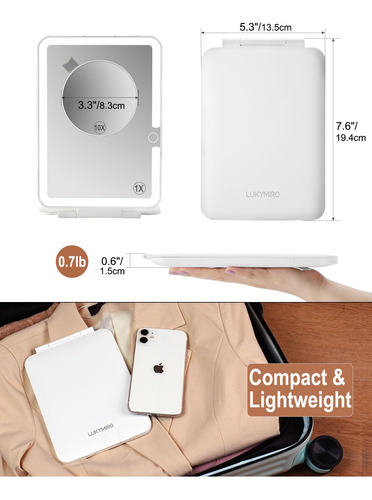 Espelho De Maquiagem Lukymiro Recarregável Com Luzes 10x Mag