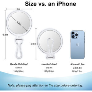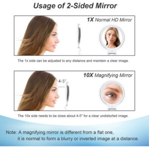 Espelho de aumento 10x Espelho de mão Espelho portátil Espelho de viagem Espelho ampliado Espelho de maquilhagem Espelho de maquilhagem Espelho de mesa com suporte Espelho dobrável com alça ajustável Espelho de mão de dupla face com ampliação de 1x 10x Espelho de aumento de tamanho compacto Espelho de aumento portátil pequeno Espelho de aumento portátil 10x Espelho pessoal para menina e mulher Presente de mãe – Ampliação poderosa e dupla face – Bem-vindo à AMISCE! Aqui está um espelho de dupla face com ampliação de 1x e 10x. O lado 1x é um espelho pessoal de alta definição para nosso uso diário. O forte espelho de aumento de 10x funciona bem para maquiagem, barbear, limpeza profunda e assim por diante, para nos tornar mais perfeitos. Pegue um, você receberá dois. – Alça/suporte ajustável – Com um suporte flexível, é um espelho de mão multiuso com alça, que pode ser girado em vários ângulos para atender às nossas necessidades. É mais do que apenas um espelho portátil, mas um espelho de mesa resistente, um espelho de maquiagem ampliado, um espelho de chuveiro suspenso, um espelho de viagem portátil, etc. Será o espelho que você precisa e gosta. – Portátil e compacto – 5,6 onças de peso leve e 5" de diâmetro, o tamanho compacto o torna um espelho de viagem dobrável perfeito, fácil de transportar e embalar em uma bolsa, mochila ou outro. O que você receberá é um espelho portátil muito versátil para mostrar sua beleza a qualquer momento. – Espelho de maquilhagem durável premium – Este espelho portátil é feito de moldura de acrílico transparente e vidro HD espessado, o que torna o pequeno espelho mais elegante e durável. Esse espelho de maquiagem de viagem exclusivo com ampliação de 10x é um presente perfeito para mulheres e meninas. – Dicas quentes e serviços pós-venda – Observe que o espelho de aumento de 10x é diferente de um espelho plano. Precisamos manter o espelho de 10x de 4-5 polegadas próximo ao nosso rosto para obter uma imagem nítida e sem distorções. É normal mostrar uma imagem invertida ou distorcida à distância, como outro espelho ampliado. Não se preocupe, tente ajustar a distância para cerca de 4 polegadas. Se você não estiver satisfeito com o espelho de viagem, sinta-se à vontade para entrar em contato conosco. Prometemos corrigi-lo em 24 horas nos dias de semana.