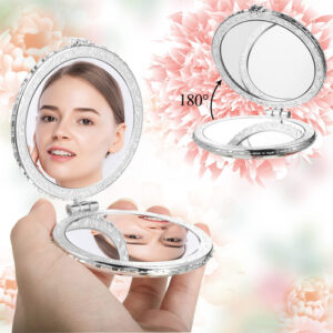 Características: Fácil de transportar: o espelho de viagem dobrável é pequeno, leve e fácil de transportar. Tanto adultos quanto crianças vão adorar o design floral pastoral retrô e fofo. Compartilhe com outras pessoas: esses espelhos de bolsa compactos são adequados para mulheres e meninas. Compartilhe-os com seus amigos e familiares, mostrando seu amor. Especificações: Material: plástico ABS, tecido de algodão Cor: conforme mostrado na imagem Tamanho: redondo: 2,7 x 2,7 x 0,6 polegadas Quadrado: 2,8 x 2,7 x 0,6 polegadas Formato do coração: 2,7 x 2,7 x 0,6 polegadas O pacote inclui: 9 espelhos compactos Nota: medição manual, permita pequenos erros de tamanho. A cor pode haver uma pequena diferença devido às diferentes telas. – O pacote inclui: você receberá 9 peças de espelho floral compacto com design floral retrô, elegante e charmoso, 3 formas diferentes (quadradas, redondas, em forma de coração), 3 cores diferentes, suficientes para satisfazer suas necessidades de uso diário – Design retrô: o espelho da bolsa adota padrões retrô e bonitos de peônia, retornando à natureza, defendendo a natureza, combinando a natureza e obtendo um equilíbrio físico e psicológico na vida social acelerada de alta tecnologia de hoje, tornando sua vida confortável – Materiais confiáveis: esses espelhos pessoais portáteis são feitos à mão; a capa do espelho é feita de plástico ABS e tecido de algodão, macia e confortável, o espelho é fácil de dobrar, tem boa textura, não é fácil de quebrar e pode servir por muito tempo. O que você quiser: este lindo espelho de bolsa é leve, com apenas 40 gramas; este espelho de mão tem dois espelhos, que podem atender às suas necessidades de maquiagem, muito adequados para rímel, fio dental, etc.; você pode colocá-lo no bolso ou na bolsa, compacto e fácil de transportar. Presentes íntimos: quer crianças ou meninas os recebam presentes, eles estarão cheios de surpresas; esses espelhos cosméticos dobráveis são leves e confortáveis, com lindas combinações de cores e ideias inteligentes; você pode optar por compartilhá-los com seus amigos e familiares