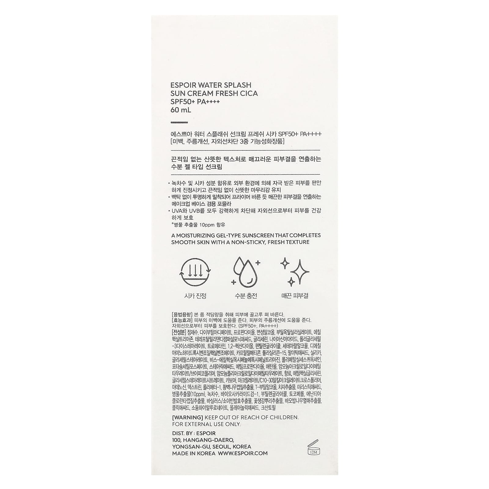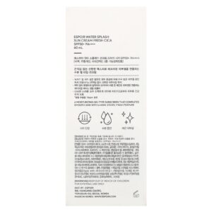 Espoir Creme Solar Water Splash Cica Fresca FPS 50+ PA++++ 60 ml – Espoir Cuidados Pessoais Protetor Solar Cuidados Íntimos.