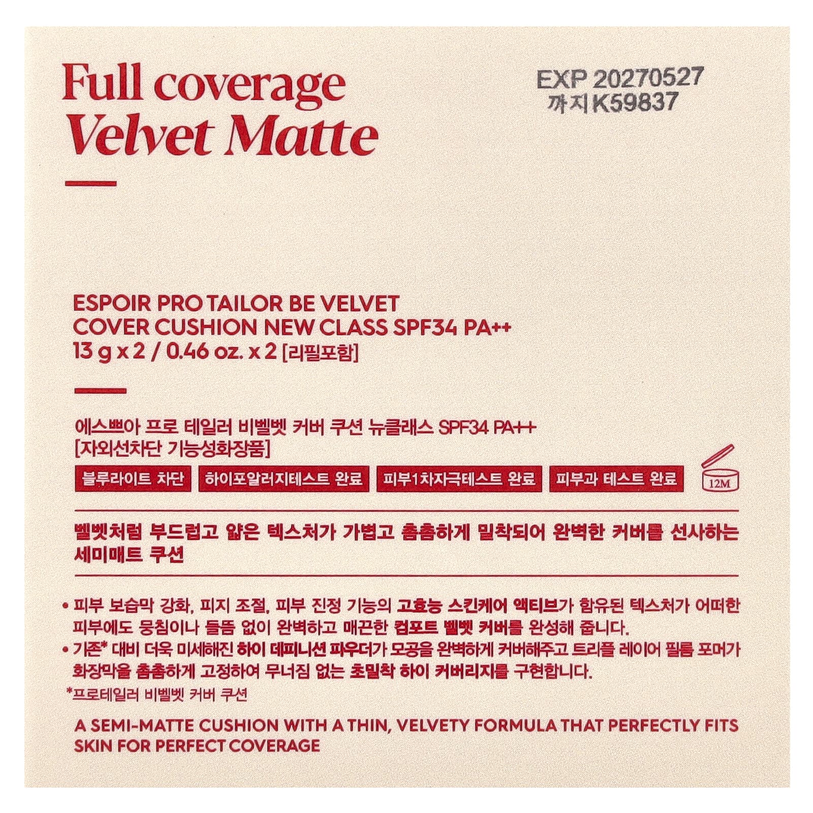 Espoir Pro Tailor Be Proteção Aveludada Nova Classe FPS 34/PA++ 23 Bege 2 Unidades 13 g (046 oz) Cada – Espoir Beleza Maquiagem Rosto Spray e Pó Fixador Base.