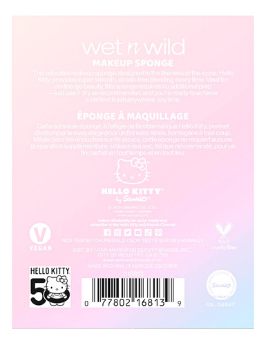 Esponja de maquiagem Hello Kitty wet n wild — Design 3D, fácil de usar, aplicação sem riscos, livre de crueldade e vegana — Design 3D: esta esponja 3D foi projetada para se parecer com a Hello Kitty. – Fácil de usar: recomendada para uso seco, esta adorável esponja de maquiagem rosa é perfeita para uma aplicação fácil e em qualquer lugar! – Mistura sem riscos: feita com tecnologia hidrofílica para garantir uma aplicação suave de maquiagem líquida, em creme e em pó. – Livre de crueldade: os produtos de maquiagem wet n wild nunca são testados em animais e são sempre livres de crueldade.