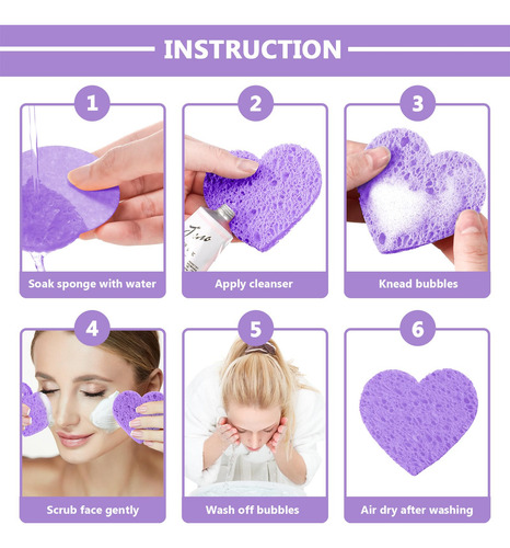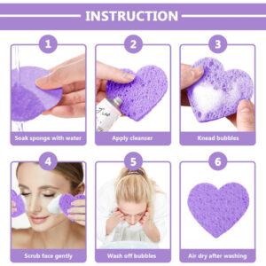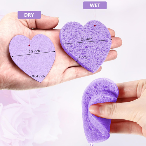 – Adorável esponja para lavagem facial: a embalagem contém 60 peças de lindas esponjas faciais naturais comprimidas em forma de coração, embaladas em um recipiente de plástico transparente, conveniente para armazenamento e transporte, adequada para casa e salões de beleza