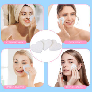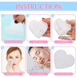 – Adorável esponja para lavagem facial: a embalagem contém 60 peças de lindas esponjas faciais naturais comprimidas em forma de coração, embaladas em um recipiente de plástico transparente, conveniente para armazenamento e transporte, adequadas para casa e salões de beleza