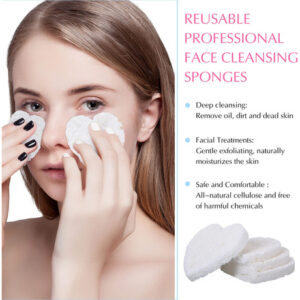 – Esponjas reutilizáveis: essas esponjas faciais são feitas de esponja totalmente natural, extraída da polpa de madeira natural, não contêm ingredientes irritantes, não irritam a pele e têm boa absorção, a esponja removedora de maquiagem é forte e reutilizável, você pode usar uma peça toda semana, basta enxaguar a esponja com água quente e sabão, torcer a água após cada uso, e guarde-o em local fresco e seco