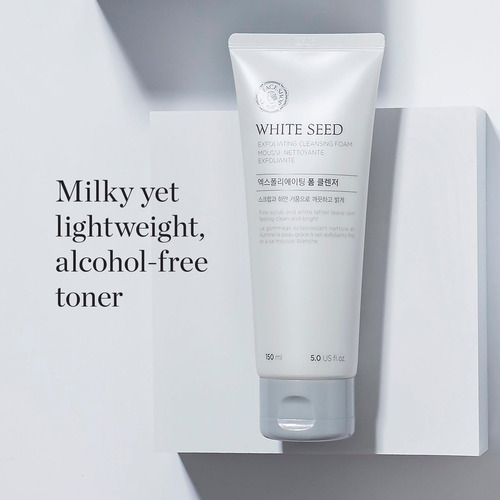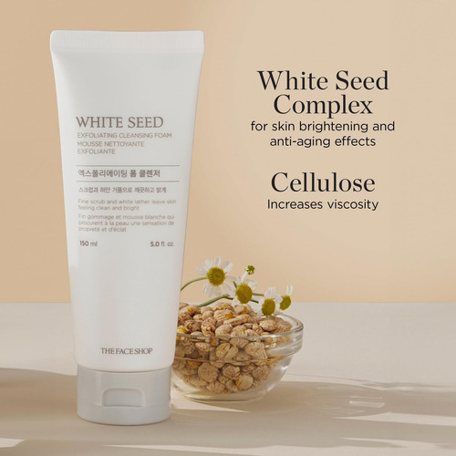 Limpador de espuma esfoliante The Face Shop White Seed Limpador facial, limpeza profunda, clareia a pele, remove células mortas Melhora a textura e a clareza da pele, reduz o embotamento, 157 ml
