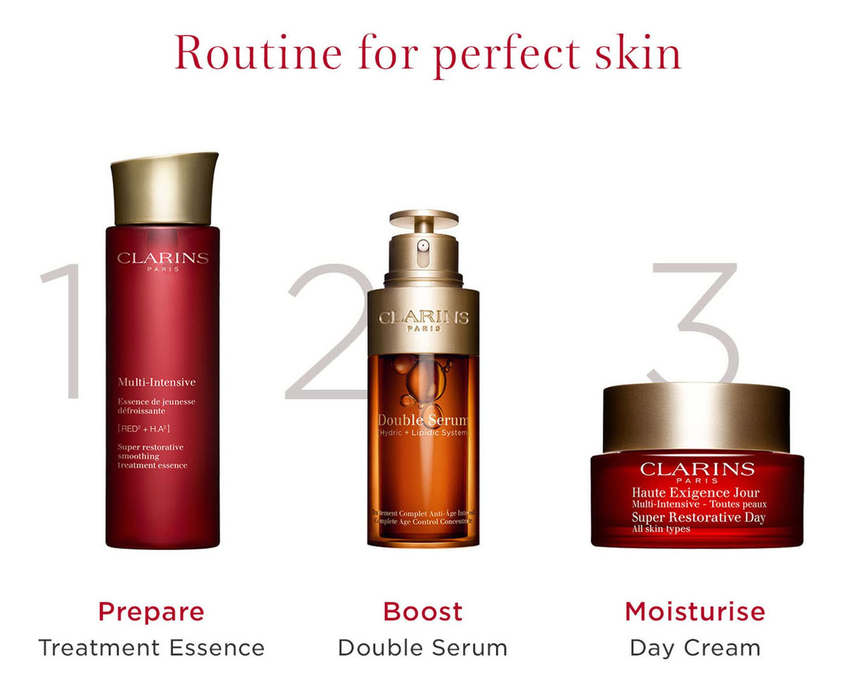 Essência de tratamento superrestauradora CLARINS | Loção facial antienvelhecimento para pele madura enfraquecida por alterações hormonais | Suaviza visivelmente, refina os poros, suaviza a pele e restaura o brilho | 6,7 fl oz – Ajude a melhorar a aparência da pele madura enfraquecida pelas mudanças hormonais com esta essência de tratamento energizante formulada com ácidos de flor de hibisco que esfoliam suavemente e extrato reabastecedor de Harungana. – Essência facial antienvelhecimento que esfolia suavemente os ácidos da flor de hibisco e o extrato reabastecedor de Harungana. – Essência facial antienvelhecimento que esfolia suavemente os ácidos da flor de hibisco. suaviza, suaviza, restaura o brilho e prepara a pele para os tratamentos seguintes. – Recomendado para peles jovens a maduras e para todas as peles tipos.