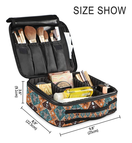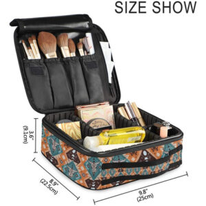 Especificações Nome do produto: Bolsa de maquiagem portátil Alaza Tamanho do produto: 9,8 x 8,9 x 3,6 polegadas Peso do produto: cerca de 0,59 kg Materiais do estojo de maquiagem A bolsa de maquiagem ALAZA é feita de tecido oxford de sarja de alta qualidade. Espaço de armazenamento suficiente Esta bolsa de maquiagem tem espaço suficiente para guardar sua maquiagem e acessórios cosméticos, como batom, corretivo, base, pó, delineador e pincéis de maquiagem. Compartimentos ajustáveis Este estojo de maquiagem tem várias divisórias ajustáveis e compartimentos para pincéis de maquiagem. Você pode projetar compartimentos internos ajustando as divisórias conforme necessário. Isso ajudará a manter os cosméticos e as ferramentas de maquiagem limpos e arrumados. Design de padrão elegante Esta bolsa de maquiagem tem um padrão de impressão elegante que torna a bolsa mais personalizada. A bolsa de maquiagem portátil multifuncional é ideal para viagens e você também pode usá-la para guardar seus cosméticos em casa. Também pode ser um presente maravilhoso para sua amante, sua mãe e suas amigas. — Tamanho do estojo de maquiagem: 9,8 x 8,9 x 3,6 polegadas; material: feito de tecido oxford de sarja de alta qualidade. (Nota: acessórios cosméticos não incluídos) – – Espaço de armazenamento suficiente: esta bolsa de maquiagem tem espaço suficiente para guardar sua maquiagem e acessórios cosméticos, como batom, corretivo, base, pó, delineador e pincéis de maquiagem. – -Compartimentos ajustáveis: este estojo de maquiagem tem várias divisórias ajustáveis e compartimentos para pincéis de maquiagem. Você pode projetar compartimentos internos ajustando as divisórias conforme necessário. Isso ajudará a manter os cosméticos e os utensílios de maquiagem limpos e arrumados. – -Design estampado elegante: esta bolsa de maquiagem tem um padrão de impressão estiloso que torna a bolsa mais personalizada. – -Multifuncional: a bolsa de maquiagem portátil é ideal para viagens e você também pode usá-la para guardar seus cosméticos em casa. Também pode ser um presente maravilhoso para seu amante, sua mãe e seus amigos.