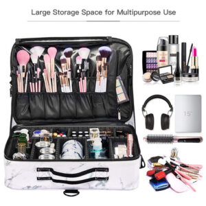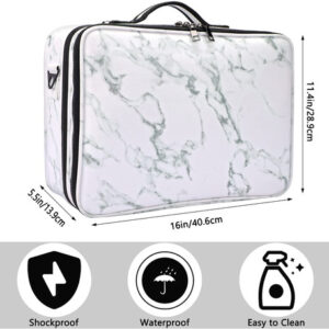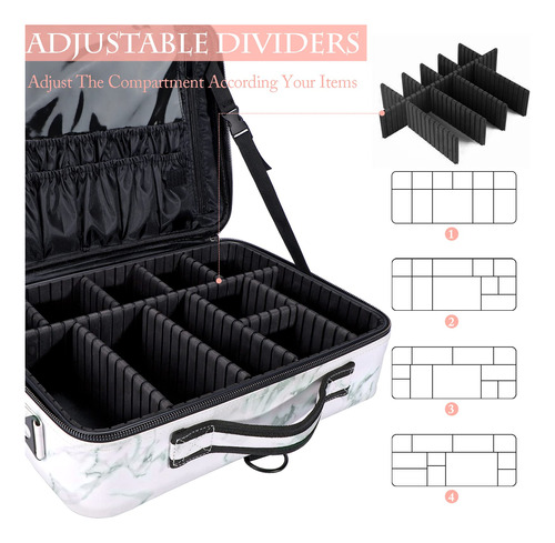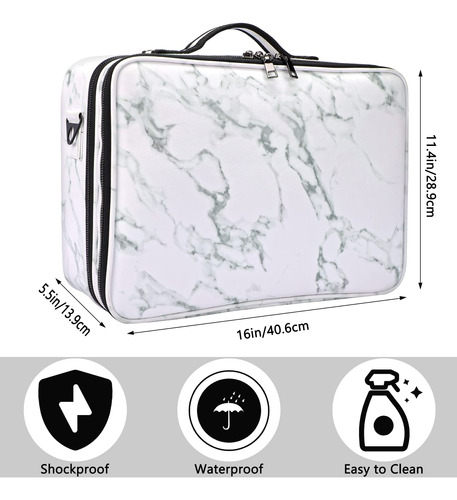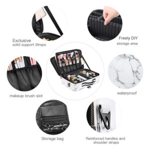 POR QUE ESCOLHER NOSSOS PRODUTOS Grande capacidade: permite que todos os cosméticos, produtos de higiene pessoal e equipamentos eletrônicos, em um local bem organizado e aberto, possam encontrar o que você precisa. Alça de suporte: o estojo de cosméticos contém alças de suporte para fazer com que o estojo de cosméticos fique em pé. Cosméticos e a mesa não fique bagunçada. Material: Bolsa de cosméticos de viagem, estilos modernos, material requintado, com acabamento requintado, é muito adequada como presente. Móvel: insira o espaço ajustável da placa para atender a todas as necessidades do seu dia a dia e das viagens. TAMANHO — Tamanho: 16* 5,5* 11,4 (polegadas) — Peso 1,8 kg Nota — Devido às diferenças nos efeitos de iluminação e na tela, considere algumas diferenças de cor. — Sinta o cheiro, basta colocar a bolsa em um local ventilado por um tempo. Sem dúvida, dentro de alguns dias. – Bolsa de maquiagem de mármoreEsta grande bolsa de maquiagem é feita de couro PU impermeável com padrão de mármore. Características duráveis de usar e fáceis de limpar. O zíper mental bidirecional é durável e fácil de usar. – Grande capacidade. Este grande estojo de viagem de maquiagem mede 16 x 5,5 x 11,4 polegadas (41 a 29 cm). 3 camadas projetadas com grande capacidade oferecem muito espaço para sua maquiagem e acessórios cosméticos, como batom, pincéis de maquiagem, sombras, paletas de maquiagem, produtos para a pele, etc. Todos os seus cosméticos podem ser bem organizados para facilitar o acesso. – SMART DIY Design: divisórias ajustáveis embutidas e alça de suporte. Você pode projetar os compartimentos internos ajustando as divisórias acolchoadas para caber em diferentes cosméticos e mantê-los perfeitamente separados e organizados sem mudar de lugar. – Várias maneiras de transportar. Esta caixa organizadora de armazenamento de maquiagem vem com uma alça de ombro, o que permite que seja usada como bolsa de ombro ou mochila. Com uma faixa na parte traseira, permita prender o estojo de maquiagem grande ao estojo do carrinho. Perfeito para viagens ou viagens de negócios. – Presente perfeito A IDEAOEWOER oferece estojos de maquiagem de qualidade premium com uma aparência bonita e excelente acabamento, o que o torna uma ótima ideia de presente para familiares, amigos, colegas ou qualquer pessoa que você ame.