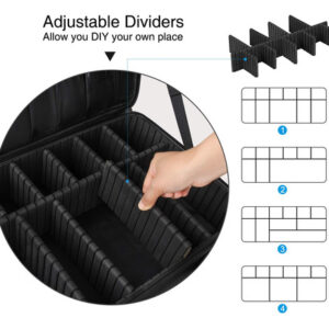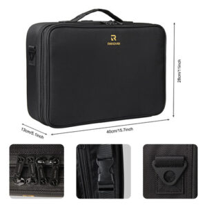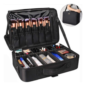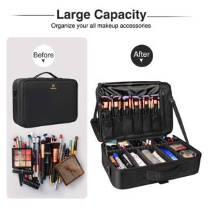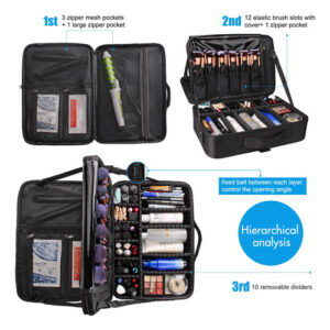 O organizador é multifuncional. Você também pode usá-lo como sacola, bolsa eletrônica e bolsa de óleos essenciais. O organizador de maquiagem oferece espaço suficiente para transportar todas as maquiagens, itens essenciais e ferramentas em qualquer lugar, a qualquer hora. Com divisórias removíveis ajustáveis, você também pode criar seus próprios compartimentos. Características: Um ótimo estojo de maquiagem profissional com material bonito e de alta qualidade, zíper luxuoso, vários slots e bolsos. Tudo o que você precisa está ok. Tecido de nylon de alto nível, com funções: fácil de limpar, à prova de vibração, antidesgaste e prevenção de extrusão. Aumenta a durabilidade e a longevidade da capa. O pacote inclui: 1 estojo de maquiagem grande Nota: os itens cosméticos não estão incluídos. – Estojo de maquiagem de grande capacidade: este estojo de maquiagem tem o tamanho perfeito para carregar todos os seus acessórios de maquiagem. Ideal para maquiadores profissionais ou amadores. – Fácil de transportar: este estojo de maquiagem vem com uma alça de ombro, use-o como bolsa de ombro ou mochila. Permita a fixação na caixa do carrinho. Liberte suas mãos. Almofada de ombro embutida para transporte confortável. – Faça você mesmo em seu próprio lugar: nesta capa de maquiagem com divisórias ajustáveis, você pode mover as divisórias conforme necessário, oferecendo mais espaço para arrumar as coisas. – Mais compartimentos para uso conveniente: esta capa de maquiagem tem 3 bolsos de malha com zíper para pó, máscara, paleta de sombras e outras ferramentas de maquiagem. Uma grande bolsa de malha com zíper e um grande bolso com zíper. E 12 ranhuras elásticas para pincéis de maquiagem com capa de plástico dão a todos os seus pincéis um “lar” seguro. Cinto fixo entre cada camada para controlar o ângulo de abertura. – Material de alta qualidade: este estojo de maquiagem é feito de tecido oxford de alta qualidade que é durável, resistente à água e fácil de limpar. Não precisa se preocupar, pois isso causará danos em qualquer lugar.
