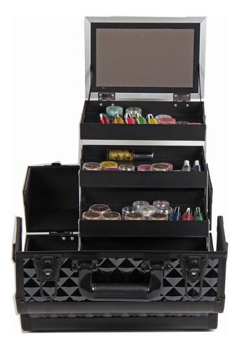 Estojo de maquiagem profissional SHANY Premier Fantasy Caixa de cosméticos Organizador de estojos de maquiagem portátil Armazenamento de joias com fechaduras, 3 bandejas, alça de ombro, porta-pincéis de maquiagem e espelho de cosméticos – preta – Caixa de maquiagem profissional SHANY: estojo de maquiagem extra grande para viagem que mede 12,5 polegadas x 8 polegadas x 8 polegadas. Ele pesa cerca de 7,5 libras. O estojo de beleza vem com porta-pincéis para cosméticos, espelho de maquiagem, alça de ombro e 3 bandejas de maquiagem para facilitar o armazenamento. – Qualidade e design premium: os estojos de beleza leves de alta capacidade da SHANY são feitos com alumínio real e plástico ABS para maior durabilidade e funcionalidade. Cada bandeja é coberta com uma capa à prova de manchas para manter suas bandejas limpas e sem respingos. – Usados por profissionais: os organizadores de beleza da SHANY Travel são ideais para cosmetologistas, técnicos de unhas, organizadores de maquiagem pessoais, caixas de maquiagem para viagens, salões de maquiagem, armazenamento de joias, estudantes de maquiagem, caixas de ferramentas de armazenamento e muito mais. – Ideias de presentes e uso pessoal: os estojos de maquiagem SHANY Travel são elegantes e chiques. Eles vêm em várias cores e são uma excelente ideia de presente para o Dia dos Namorados, presente de Natal para mamãe, presente de aniversário para meninas e adolescentes, presentes para estudantes de maquiagem, ideia de presente para crianças e assim por diante. – Feito por uma marca confiável: SHANY é mundialmente conhecida por impressionar e nunca decepcionar. Os produtos inovadores e patenteados da SHANY são projetados por maquiadores profissionais nos EUA. Cores não tóxicas, seguras para maquiagem infantil, maquiagem infantil, maquiagem para adolescentes e adultos.