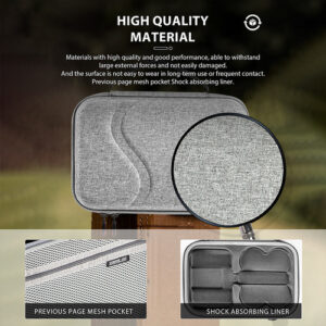O design da alça superior é conveniente para transportar em qualquer lugar; Design compacto, adequado para transportar em mochilas para passeios diários; 5. Excelente experiência de usuário. Design com zíper duplo, corrente lisa e sem obstruções, conveniente para abrir ou fechar a bolsa de armazenamento, fácil de segurar e armazenar seus dispositivos;