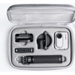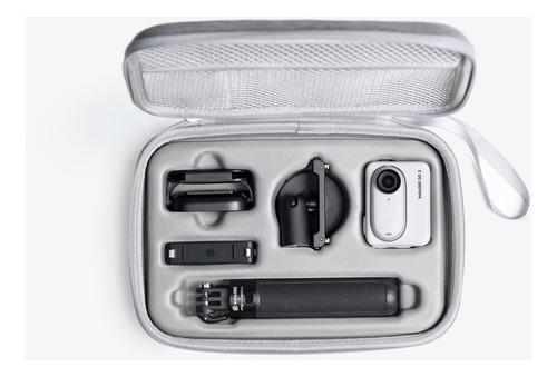 Estojo de transporte Insta360 GO 3/GO 3S – Nota: as imagens são apenas para referência. A aparência real do produto pode variar, mas a função permanece a mesma. – Mantenha seu GO 3/GO 3S e seus itens essenciais sãos e salvos entre as filmagens. – Moldado com precisão para GO 3/GO 3S, acessórios na caixa*, mini tripé 2 em 1 e suporte de liberação rápida. * Protetor de lente, suporte giratório, pingente magnético e clipe fácil. — Capa robusta e rígida para proteger sua pequena câmera de choques e quedas.