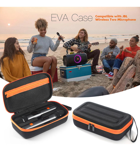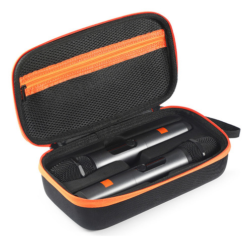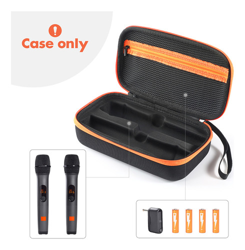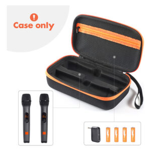 ''Estojo para microfone sem fio, estojo para microfone duplo portátil à prova d'água, bolsa de transporte para viagem, bolsa de armazenamento para microfone portátil antirriscos e à prova de choque para sistema sem fio JBL de dois microfones Características: 1 Projetado: Este estojo para microfone sem fio é especificamente compatível com o sistema sem fio JBL de dois microfones, versão operada por bateria AA. Com moldagem de máquina real 1:1, ranhuras personalizadas e design de tamanho, ele se encaixa perfeitamente. O bolso interno de malha com zíper pode armazenar pilhas AA, receptores e outros acessórios, tornando-o conveniente para organizar e transportar todo o seu equipamento.