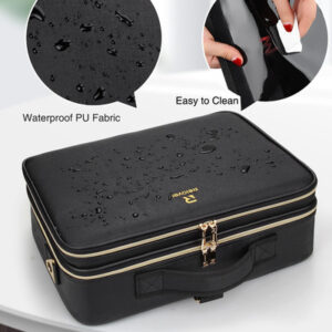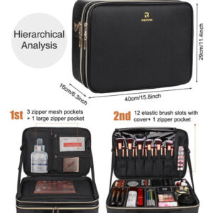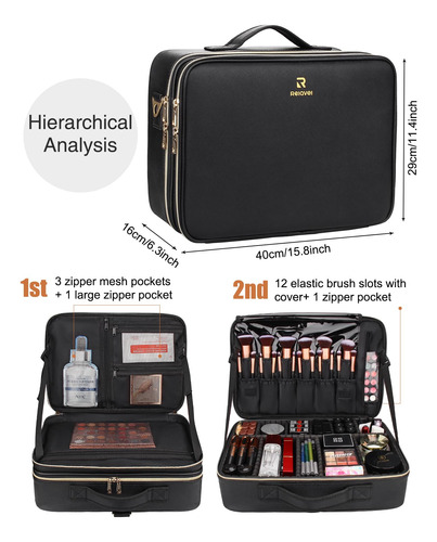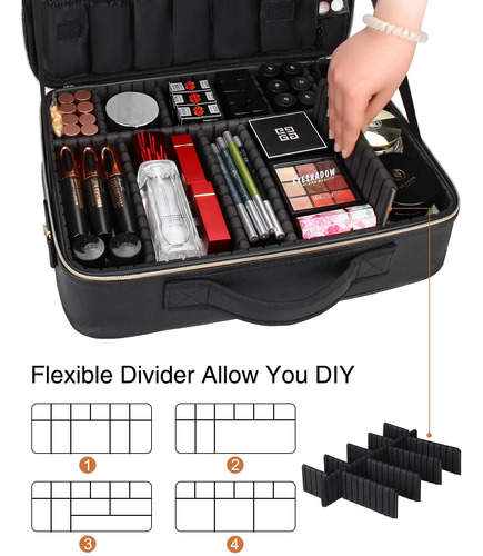 1* Bolsa de maquiagem grande — espaço suficiente: tamanho: 15,8 x 11,4 x 6,3 polegadas. Esta bolsa de cosméticos de grande capacidade vem com 5 bolsos com zíper para a paleta de sombras, 12 fendas elásticas com capas de PVC para pincéis de maquiagem e um compartimento removível na parte inferior. Remova o compartimento para guardar mais itens. – MATERIAL DURÁVEL: A bolsa de cosméticos de alta qualidade é fácil de limpar. Embrulhado em PU impermeável com padrão de mármore, é elegante e resistente à sujeira; forro de nylon resistente ao desgaste, bolso de malha respirável com zíper SBS de metal liso e capa de PVC impermeável. A alta qualidade pode prolongar a vida útil. – Design portátil: esta elegante bolsa de cosméticos de mármore pode acompanhá-lo em qualquer lugar e é fácil de transportar. A alça macia proporciona uma sensação confortável, a alça de ombro ajustável com apoio de ombro combina com 5 fivelas de metal, pode ser ajustada em um único ombro ou ombros duplos, e a bolsa de maquiagem também pode ser fixada na capa do carrinho. – Armazenamento múltiplo Esta bolsa de cosméticos multifuncional não é apenas a ferramenta de armazenamento perfeita para maquiadores, mas também pode armazenar ferramentas de unhas, acessórios eletrônicos, ferramentas de cabeleireiro, produtos para a pele, joias e itens de viagem. E cada a camada tem duas tiras de fixação ajustáveis, que podem manter a tampa em pé quando é aberta para facilitar acesso aos itens. – Espaço DIY A bolsa de maquiagem profissional tem divisórias ajustáveis, o espaço inferior é projetado por você de acordo com o formato do item, ela pode manter todos os itens limpos e resistentes.